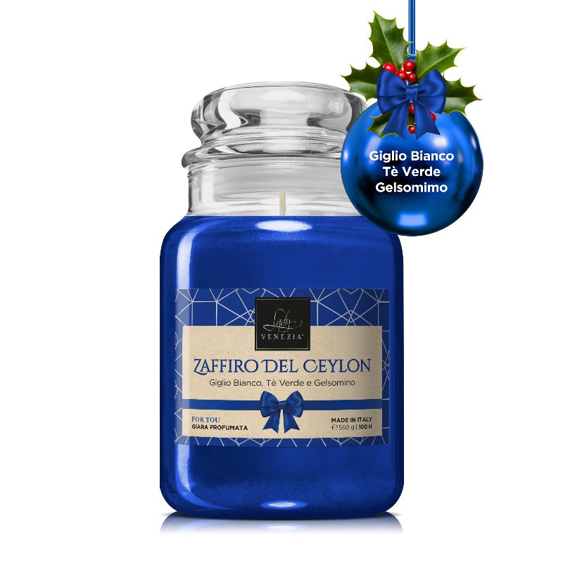 Aggiungi un tocco di eleganza e freschezza alla tua atmosfera con la Candela Profumata "For You" di Lady Venezia, nella fragranza esclusiva "Zaffiro di Ceylon". Un trionfo di Giglio Bianco, Tè Verde e Gelsomino crea un bouquet aromatico irresistibile, avvolgendo gli spazi con un profumo delicato e raffinato.Caratteristiche Principali:• Profumo "Zaffiro di Ceylon": La fragranza "Zaffiro di Ceylon" della linea "For You" di Lady Venezia combina la purezza del Giglio Bianco, la vitalità del Tè Verde e la sensualità del Gelsomino, creando un'esperienza olfattiva fresca e avvolgente.• Lunga Durata: Con una durata di 100 ore, questa candela profumata offre una fragranza persistente, creando un'atmosfera accogliente e rilassante.• Design Elegante: Presentata in un vaso di vetro dall'elegante design, la candela si adatta perfettamente a qualsiasi ambiente, aggiungendo un tocco di raffinatezza e stile.• Versatile e Delicata: Ideale per creare un'atmosfera rilassante, per cene romantiche o per qualsiasi momento speciale, questa candela è una scelta versatile per chi ama i profumi delicati e raffinati.• Idea Regalo: Questa candela è pronta per essere regalata a chiunque ami le fragranze esclusive e l'eleganza raffinata.• Modalità D'Uso: Accendi la candela "For You" e immergiti nell'aroma avvolgente di Zaffiro di Ceylon. Perfetta per momenti di relax, cene speciali o per aggiungere un tocco di freschezza a qualsiasi ambiente.Scegli la raffinatezza della Candela Profumata "For You" di Lady Venezia nella fragranza "Zaffiro di Ceylon" e regala alla tua casa un'atmosfera delicata e avvolgente.
