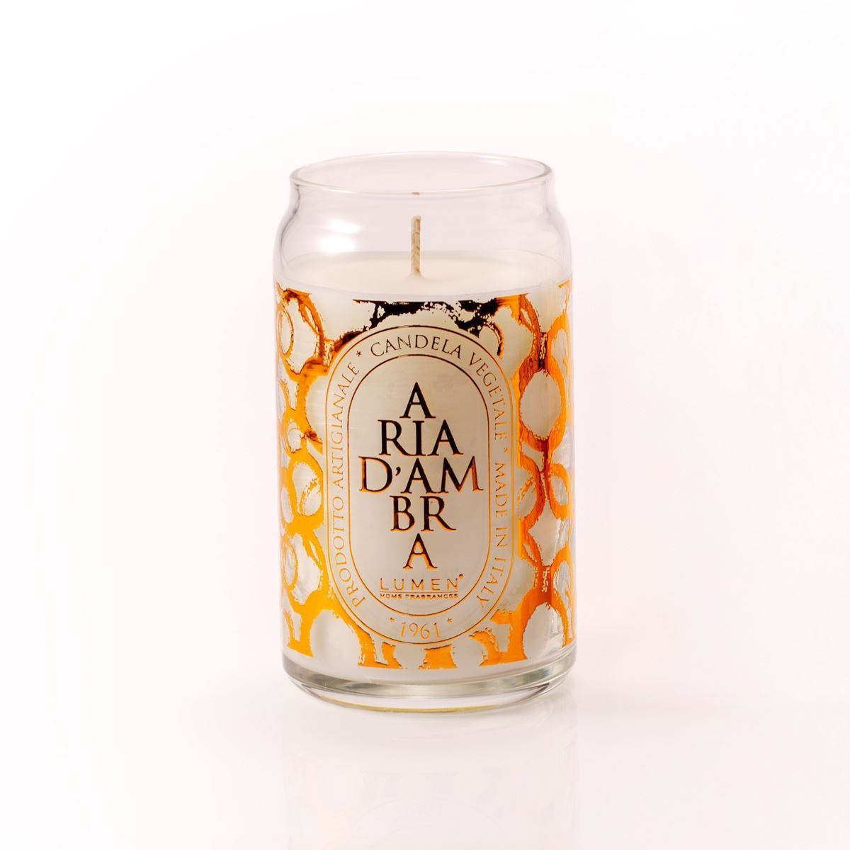 La candela vegetale Lumen Aria d'Ambra in giara di vetro da 300 ml è pensata per diffondere nell'ambiente una fragranza passionale, avvolgente e ricca di sfumature orientali. La profumazione ambrata, intensa e vellutata, nasce da una composizione aromatica costruita su tre livelli olfattivi che si fondono in modo armonioso: una partenza luminosa e raffinata, un cuore caldo e sensuale e un fondo morbido che rimane a lungo nell'aria. L'aroma combina eleganza e profondità, creando un'atmosfera accogliente ideale per serate rilassanti, momenti di lettura o per dare personalità agli ambienti della casa durante tutto l'anno. La cera vegetale, unita allo stoppino in cotone non trattato, assicura una combustione pulita e uniforme che valorizza la naturale intensità della fragranza. La giara in vetro di alta qualità, dal design luminoso ed elegante, contribuisce a rendere l'esperienza ancora più ricercata e, una volta esaurita la candela, può essere riutilizzata come vaso porta fiori, porta matite o elemento decorativo.