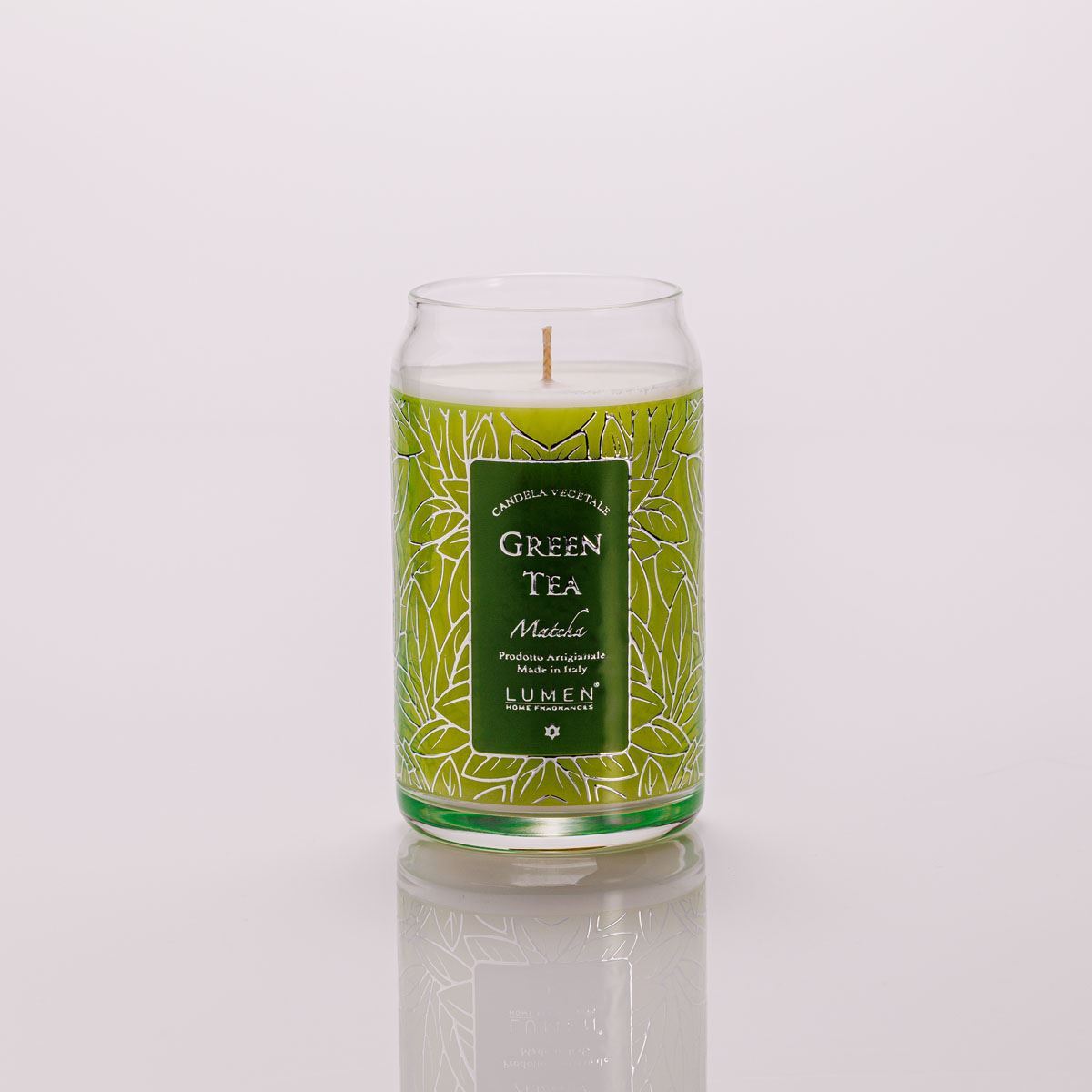 Candela Vegetale Lumen Green Tea Matcha in Giara di Vetro 300 ml Profumazione Fresca Muschiata e Ambrata
