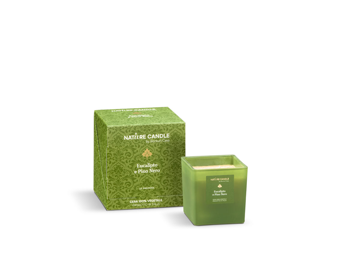Lasciati avvolgere dalla fragranza rinfrescante e rinvigorente delle candele "Nature Candle Linea Le Preziose - Eucalipto e Pino Nero". Realizzate con cera 100% vegetale, queste candele trasformano il tuo spazio in un'oasi di benessere, combinando la purezza della natura con l'artigianato di alta qualità. All'accensione, percepirai le note di testa di eucalipto, menta, bergamotto e canfora, che offrono un'iniziale sensazione di freschezza e vitalità. Queste si fondono armoniosamente con un cuore erbaceo di muschio di quercia, rosmarino, lavandula e geranio, aggiungendo un tocco di profondità e calore. Infine, un fondo avvolgente di pino nero, legno di cedro, sandalo e patchouli completa l'esperienza olfattiva, creando un'atmosfera calda e rilassante che persiste nel tempo.