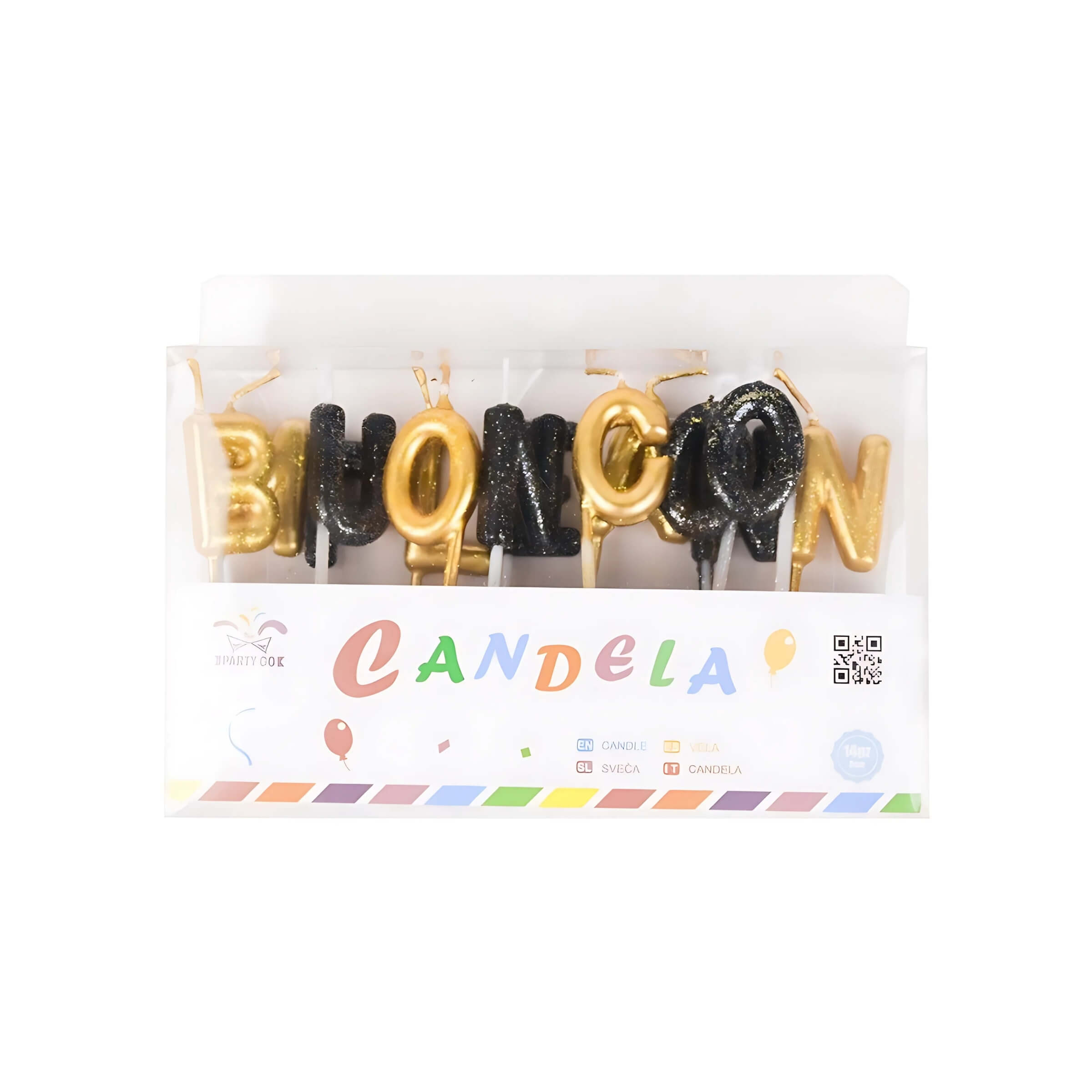 Rendi la torta di compleanno elegante e scenografica con il set di candeline a lettere "Buon Compleanno" nei raffinati colori oro e nero. Perfette per aggiungere un tocco di stile e originalità, queste candeline tridimensionali sono pensate per chi desidera una decorazione d'effetto, moderna e diversa dalle classiche soluzioni colorate.• Contenuto della confezione: Il set include 14 candeline a forma di lettera, composte dalla scritta completa "BUON COMPLEANNO". Le lettere sono alternate in colorazione oro lucido e nero glitterato, offrendo un contrasto visivo elegante e dinamico, ideale per feste raffinate o a tema.• Modalità di utilizzo: Ogni lettera è montata su uno stelo in plastica rigida che consente di fissare facilmente le candeline sulla torta. La disposizione può essere personalizzata a seconda dello spazio e dello stile della decorazione. L’accensione avviene facilmente grazie allo stoppino in cima a ogni lettera.• Dimensioni: Le candeline misurano circa 8 cm in altezza totale, inclusa la base, risultando ben visibili sulla torta senza appesantire la composizione estetica. L’altezza permette di dare risalto al messaggio mantenendo armonia con le dimensioni del dolce.• Occasioni d’uso: Perfette per compleanni di adulti, party a tema elegante, feste serali o eventi speciali, queste candeline sono ideali per dare un tocco distintivo alla torta e creare foto di grande impatto. L’effetto oro e nero è particolarmente indicato per ambientazioni chic, glamour o sofisticate.• Composizione e materiali: Le lettere sono realizzate in cera colorata di alta qualità con effetto metallizzato e glitter. La base in plastica rigida è pensata per garantire stabilità durante l’uso e sicurezza a contatto con il dolce.Il set candeline “Buon Compleanno” in oro e nero è il dettaglio che trasforma ogni torta in un vero e proprio centrotavola. Una scelta di stile per chi ama celebrare con classe, senza rinunciare alla creatività.Avvertenze: Prodotto da utilizzare sotto la supervisione di un adulto. Non lasciare incustodite le candeline accese. Assicurarsi che siano completamente spente prima dello smaltimento.