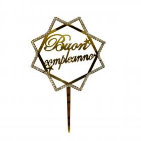 Decorazione per torta Buon Compleanno Rettangolo Oro