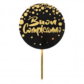 Decorazione per torta Buon Compleanno Tondo Nero-Oro