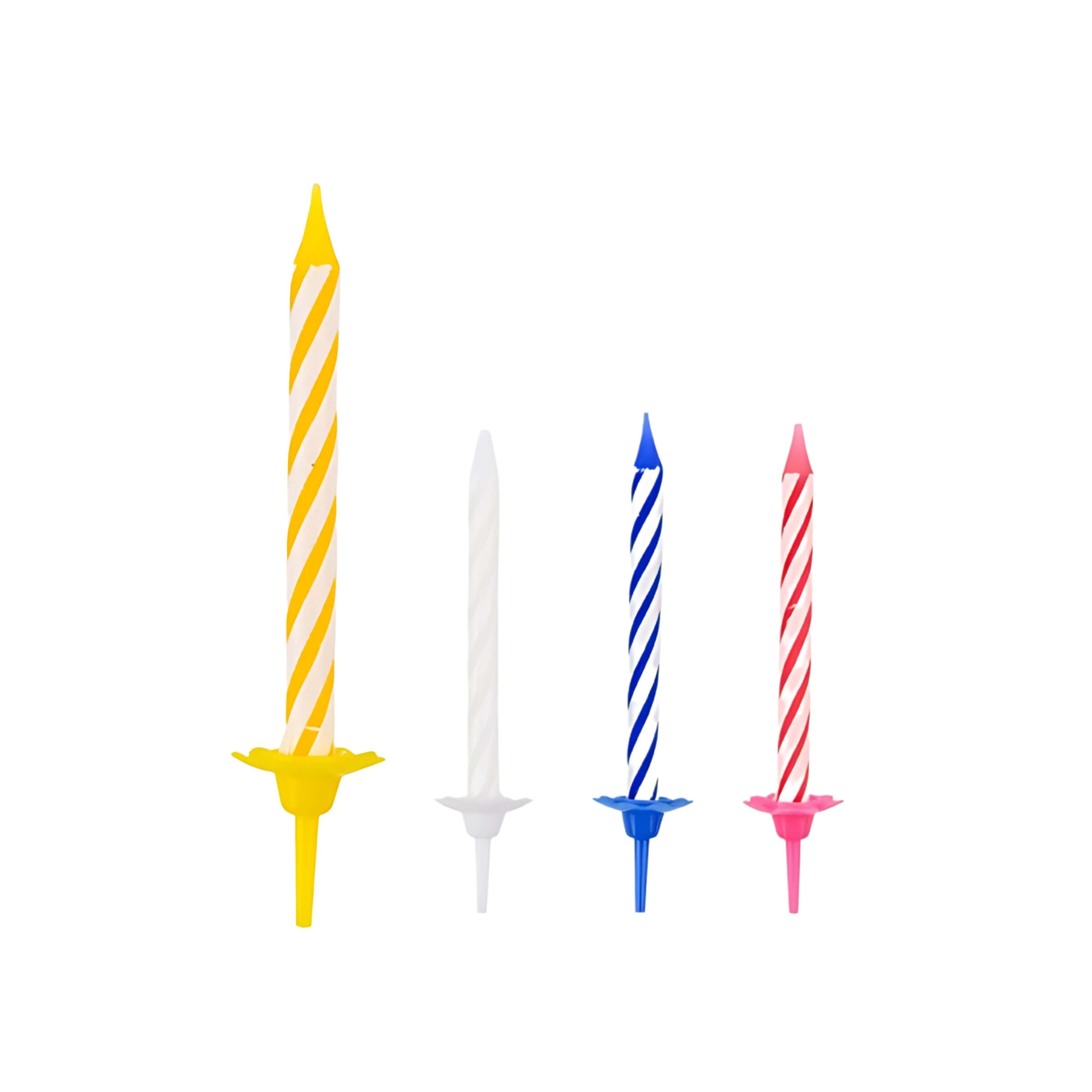 • Colorazione vivace: Le candele sono disponibili in quattro tonalità brillanti – giallo, rosa, blu e bianco – con una finitura a spirale che dona dinamismo alla composizione. Ideali per torte a tema, feste per bambini o eventi allegri e informali.