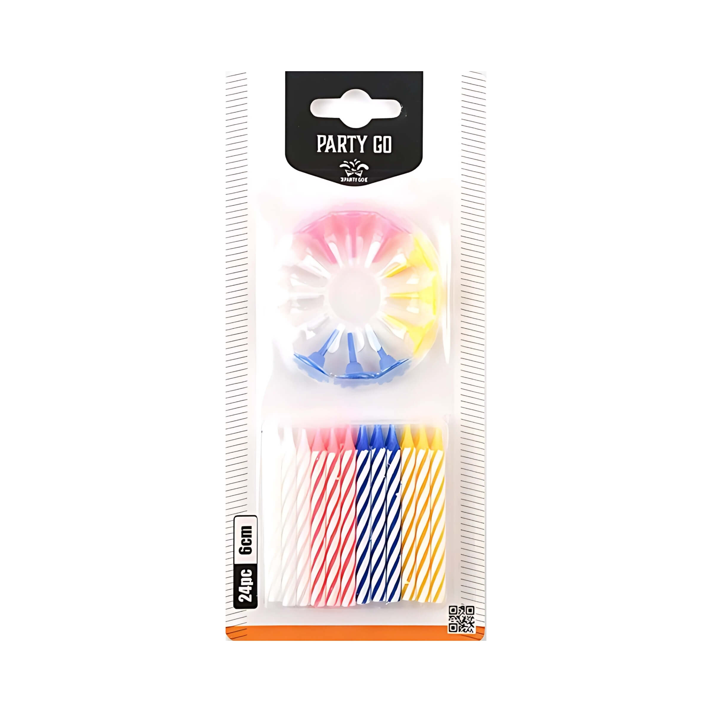 Le candeline a spirale colorate da 6 cm sono l’aggiunta perfetta per rendere ogni torta più festosa e coinvolgente. Con il loro design vivace e le tonalità assortite, trasformano qualsiasi dolce in un vero protagonista della festa. Un tocco allegro e multicolore per celebrare ogni compleanno con un sorriso.• Contenuto della confezione: Il set include 24 candeline assortite da 6 cm e 12 basette in plastica rigida colorata, abbinate alle candele per un effetto estetico armonioso e ordinato. I materiali sono resistenti e pensati per garantire stabilità e sicurezza durante l’uso.• Colorazione vivace: Le candele sono disponibili in quattro tonalità brillanti – giallo, rosa, blu e bianco – con una finitura a spirale che dona dinamismo alla composizione. Ideali per torte a tema, feste per bambini o eventi allegri e informali.• Pronte all’uso: Grazie alla basetta con puntale già integrato, le candeline possono essere facilmente inserite sulla torta in pochi secondi, senza rischio di inclinazione o cadute. Il design pratico semplifica la decorazione anche nelle situazioni più veloci.• Dimensioni compatte: L’altezza di 6 cm rende queste candeline perfette per ogni tipo di dolce, anche quelli di dimensioni più contenute. Un equilibrio ideale tra visibilità e praticità.• Occasioni d’uso: Queste candeline sono perfette per compleanni, baby shower, feste a tema e celebrazioni di ogni tipo, portando colore e allegria su ogni tavola.Le candeline a spirale colorate da 6 cm sono una scelta versatile e divertente per ogni tipo di festa. Semplici da utilizzare, resistenti e coordinate nei colori, offrono una decorazione pratica e curata in ogni dettaglio.Avvertenze: Utilizzare sempre sotto la supervisione di un adulto. Non lasciare la candela accesa incustodita. Tenere lontano da materiali infiammabili e da correnti d’aria. Non adatto a bambini di età inferiore ai 3 anni. Conservare la confezione per eventuali riferimenti futuri.