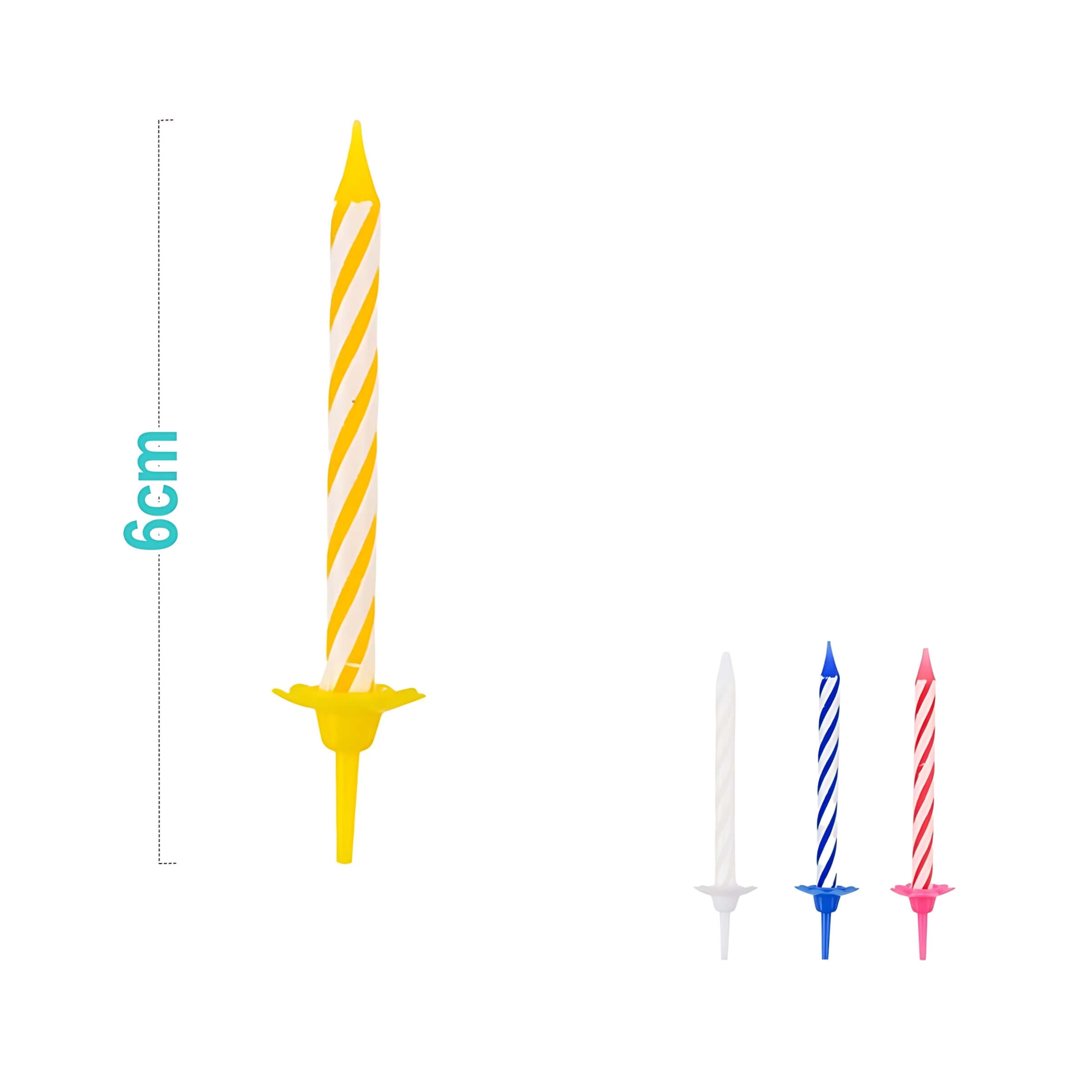 Le candeline a spirale colorate da 6 cm sono l’aggiunta perfetta per rendere ogni torta più festosa e coinvolgente. Con il loro design vivace e le tonalità assortite, trasformano qualsiasi dolce in un vero protagonista della festa. Un tocco allegro e multicolore per celebrare ogni compleanno con un sorriso.• Contenuto della confezione: Il set include 24 candeline assortite da 6 cm e 12 basette in plastica rigida colorata, abbinate alle candele per un effetto estetico armonioso e ordinato. I materiali sono resistenti e pensati per garantire stabilità e sicurezza durante l’uso.• Colorazione vivace: Le candele sono disponibili in quattro tonalità brillanti – giallo, rosa, blu e bianco – con una finitura a spirale che dona dinamismo alla composizione. Ideali per torte a tema, feste per bambini o eventi allegri e informali.• Pronte all’uso: Grazie alla basetta con puntale già integrato, le candeline possono essere facilmente inserite sulla torta in pochi secondi, senza rischio di inclinazione o cadute. Il design pratico semplifica la decorazione anche nelle situazioni più veloci.• Dimensioni compatte: L’altezza di 6 cm rende queste candeline perfette per ogni tipo di dolce, anche quelli di dimensioni più contenute. Un equilibrio ideale tra visibilità e praticità.• Occasioni d’uso: Queste candeline sono perfette per compleanni, baby shower, feste a tema e celebrazioni di ogni tipo, portando colore e allegria su ogni tavola.Le candeline a spirale colorate da 6 cm sono una scelta versatile e divertente per ogni tipo di festa. Semplici da utilizzare, resistenti e coordinate nei colori, offrono una decorazione pratica e curata in ogni dettaglio.Avvertenze: Utilizzare sempre sotto la supervisione di un adulto. Non lasciare la candela accesa incustodita. Tenere lontano da materiali infiammabili e da correnti d’aria. Non adatto a bambini di età inferiore ai 3 anni. Conservare la confezione per eventuali riferimenti futuri.