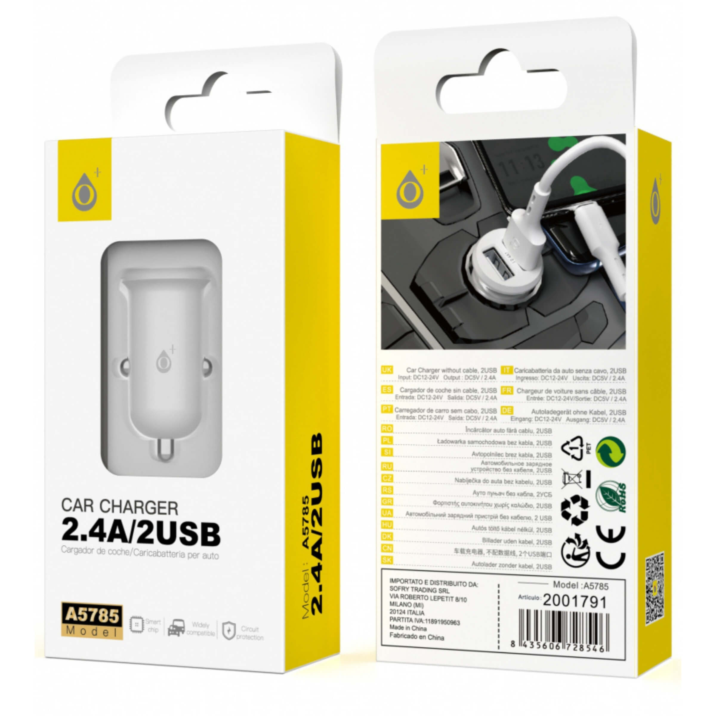 Questo caricatore per auto Proteo offre una soluzione di ricarica efficace e pratica.• Doppia Porta USB: Dotato di 2 porte USB, permette di caricare due dispositivi simultaneamente.• Materiali Resistenti: Realizzato in ABS, garantisce durabilità e resistenza.• Ampia Compatibilità di Ingresso: Con un ingresso DC 12-24V, è adatto a quasi tutti i modelli di auto.• Alta Potenza di Uscita: Offre un'uscita totale di 5V/2.4A, permettendo una ricarica veloce per i tuoi dispositivi.Il caricatore da auto A5785 NE è perfetto per chi ha bisogno di ricaricare i propri dispositivi in movimento, combinando potenza e praticità.