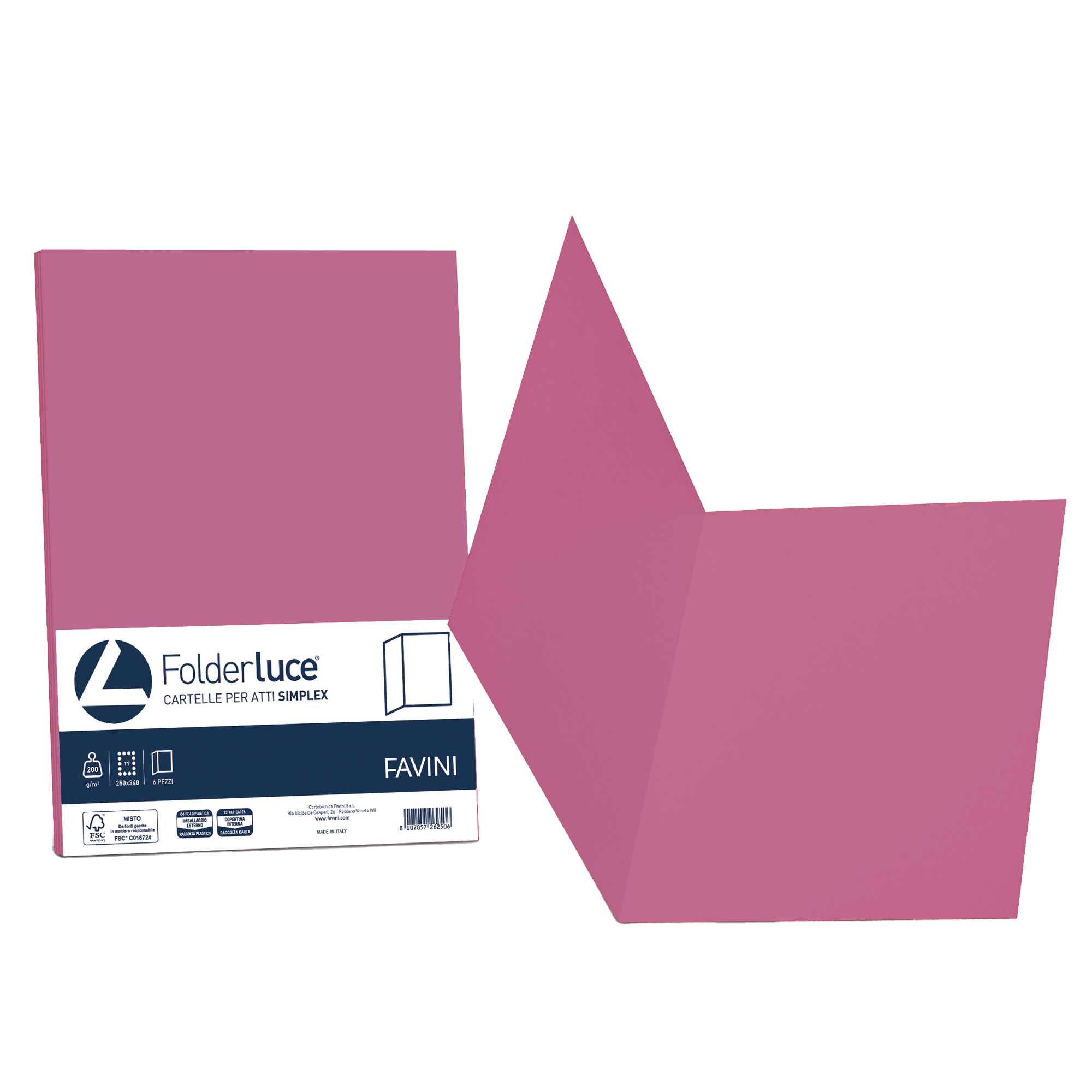 50 cartelline semplici LUCE 200gr 25x34cm ciclamino FAVINI