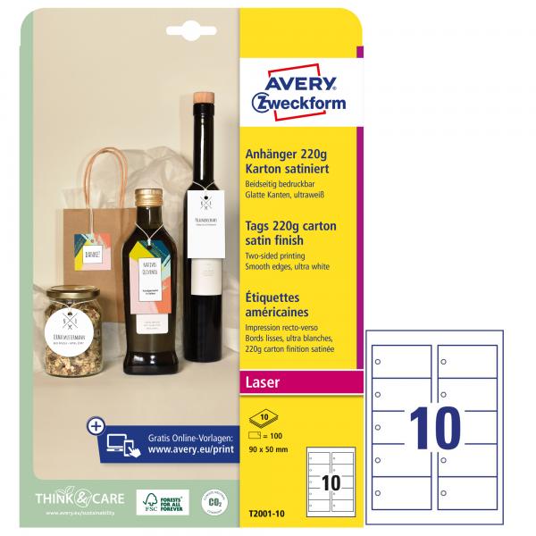 Cartellini stampabili con bordi lisci bianchi 90x50mm 10fg (10cart/fg) Avery