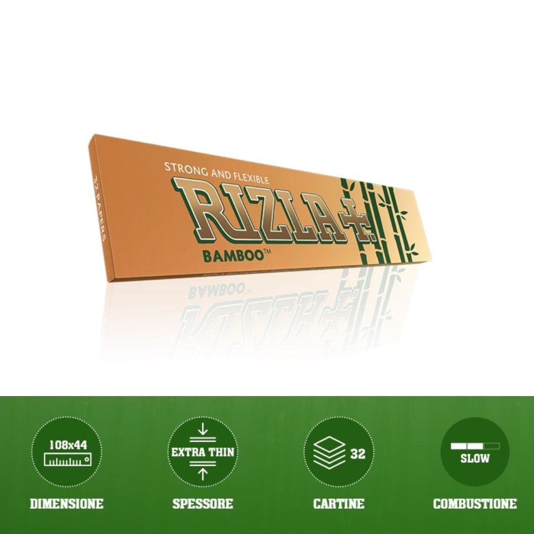 Le Cartine Rizla Bamboo KS Slim sono progettate per offrire un'esperienza di fumata naturale e di alta qualità. Ogni confezione contiene 50 libretti, ciascuno con 32 fogli di carta di bamboo 100% biologica non sbiancata, garantendo una combustione lenta e uniforme.• Formato King Size Slim: Queste cartine sono di tipo B con dimensioni 108 x 44 mm, perfette per una fumata prolungata e piacevole.• Spessore Extra Sottile: Con un peso di soli 13,5 g/m², le cartine Rizla Bamboo offrono una densità molto bassa che permette una combustione lenta, esaltando il gusto del tabacco.• Combustione Lenta: Grazie alla loro densità ridotta, queste cartine garantiscono una combustione lenta, ideale per chi desidera godersi ogni attimo della fumata.• Bamboo 100% Biologico: Le cartine Rizla Bamboo sono realizzate in bamboo 100% biologico non sbiancato, offrendo un'opzione ecologica e naturale per i fumatori attenti all'ambiente.• Design Ergonomico: Il packaging è studiato per essere pratico e facile da usare, mantenendo le cartine sempre pronte all'uso.Le Cartine Rizla Bamboo KS Slim sono la scelta perfetta per chi cerca un prodotto di alta qualità che combina naturalità, praticità e performance. La combinazione di cartine ultra sottili, combustione lenta e materiali ecologici rende questo prodotto ideale per un utilizzo quotidiano, sia a casa che in movimento.