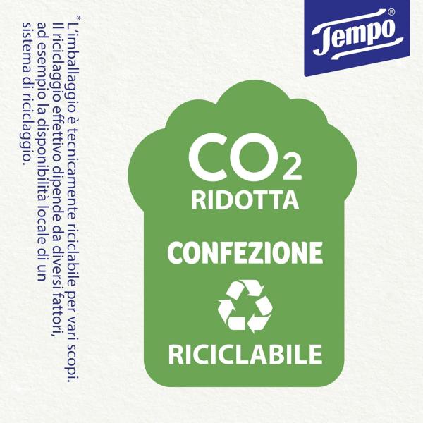 Scopri i nuovi fazzoletti Tempo, più morbidi e sostenibili che mai. Confezionati per essere a portata di mano in ogni momento del giorno, questi fazzoletti combinano comfort e resistenza in un prodotto ecologicamente consapevole. • Morbidezza Superiore: Prova la morbidezza migliorata dei fazzoletti Tempo, ora più soffici che mai, per offrire comfort anche durante i raffreddori stagionali o le allergie. • Resistenza in Lavatrice: Unici nel loro genere, questi fazzoletti mantengono la loro integrità anche dopo un passaggio accidentale in lavatrice, eliminando la preoccupazione di rovinare altri capi. • Biodegradabili e Eco-friendly: Realizzati con fibre provenienti da foreste gestite in modo responsabile e certificate FSC, i fazzoletti Tempo sono completamente biodegradabili, riducendo l'impatto ambientale. • Confezione Sostenibile: La confezione utilizza plastica PCR (post-consumo riciclata) per ridurre ulteriormente le emissioni di CO2, rafforzando l'impegno di Tempo verso pratiche più sostenibili. • Dermatologicamente Testati: Garantiti per essere delicati sulla pelle, questi fazzoletti sono testati dermatologicamente, assicurando che siano adatti anche per le pelli più sensibili. • Praticità e Sicurezza: Ogni confezione è progettata per essere facilmente riciclabile, supportando uno stile di vita eco-responsabile e fornendo un'opzione affidabile per l'igiene quotidiana. Porta sempre con te i fazzoletti Tempo per un aiuto affidabile contro raffreddori, allergie o semplicemente per un rapido ritocco durante il giorno. Con la loro resistenza, morbidezza e sostenibilità, sono l'ideale per ogni situazione, garantendo pulizia e comfort ovunque tu sia.
