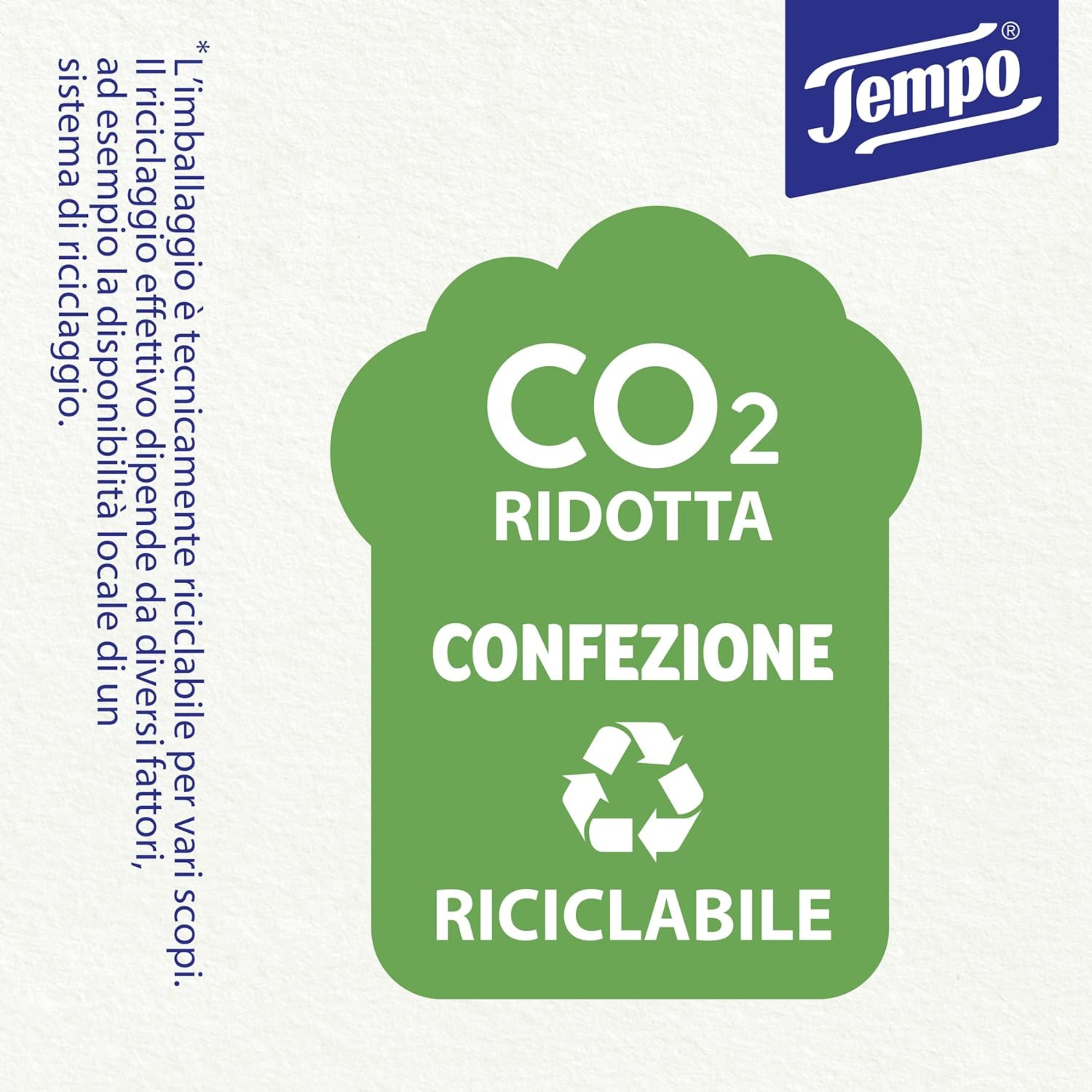 Scopri i nuovi fazzoletti Tempo, più morbidi e sostenibili che mai. Confezionati per essere a portata di mano in ogni momento del giorno, questi fazzoletti combinano comfort e resistenza in un prodotto ecologicamente consapevole.• Morbidezza Superiore: Prova la morbidezza migliorata dei fazzoletti Tempo, ora più soffici che mai, per offrire comfort anche durante i raffreddori stagionali o le allergie.• Resistenza in Lavatrice: Unici nel loro genere, questi fazzoletti mantengono la loro integrità anche dopo un passaggio accidentale in lavatrice, eliminando la preoccupazione di rovinare altri capi.• Biodegradabili e Eco-friendly: Realizzati con fibre provenienti da foreste gestite in modo responsabile e certificate FSC, i fazzoletti Tempo sono completamente biodegradabili, riducendo l'impatto ambientale.• Confezione Sostenibile: La confezione utilizza plastica PCR (post-consumo riciclata) per ridurre ulteriormente le emissioni di CO2, rafforzando l'impegno di Tempo verso pratiche più sostenibili.• Dermatologicamente Testati: Garantiti per essere delicati sulla pelle, questi fazzoletti sono testati dermatologicamente, assicurando che siano adatti anche per le pelli più sensibili.• Praticità e Sicurezza: Ogni confezione è progettata per essere facilmente riciclabile, supportando uno stile di vita eco-responsabile e fornendo un'opzione affidabile per l'igiene quotidiana.Porta sempre con te i fazzoletti Tempo per un aiuto affidabile contro raffreddori, allergie o semplicemente per un rapido ritocco durante il giorno. Con la loro resistenza, morbidezza e sostenibilità, sono l'ideale per ogni situazione, garantendo pulizia e comfort ovunque tu sia.