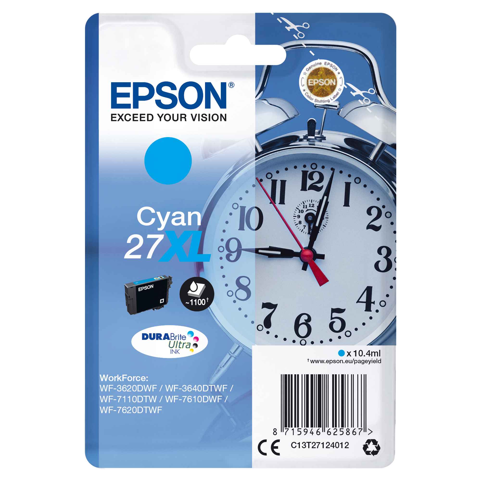 CARTUCCIA INCHIOSTRO CIANO DURABRITE ULTRA, SERIE 27XL /SVEGLIA