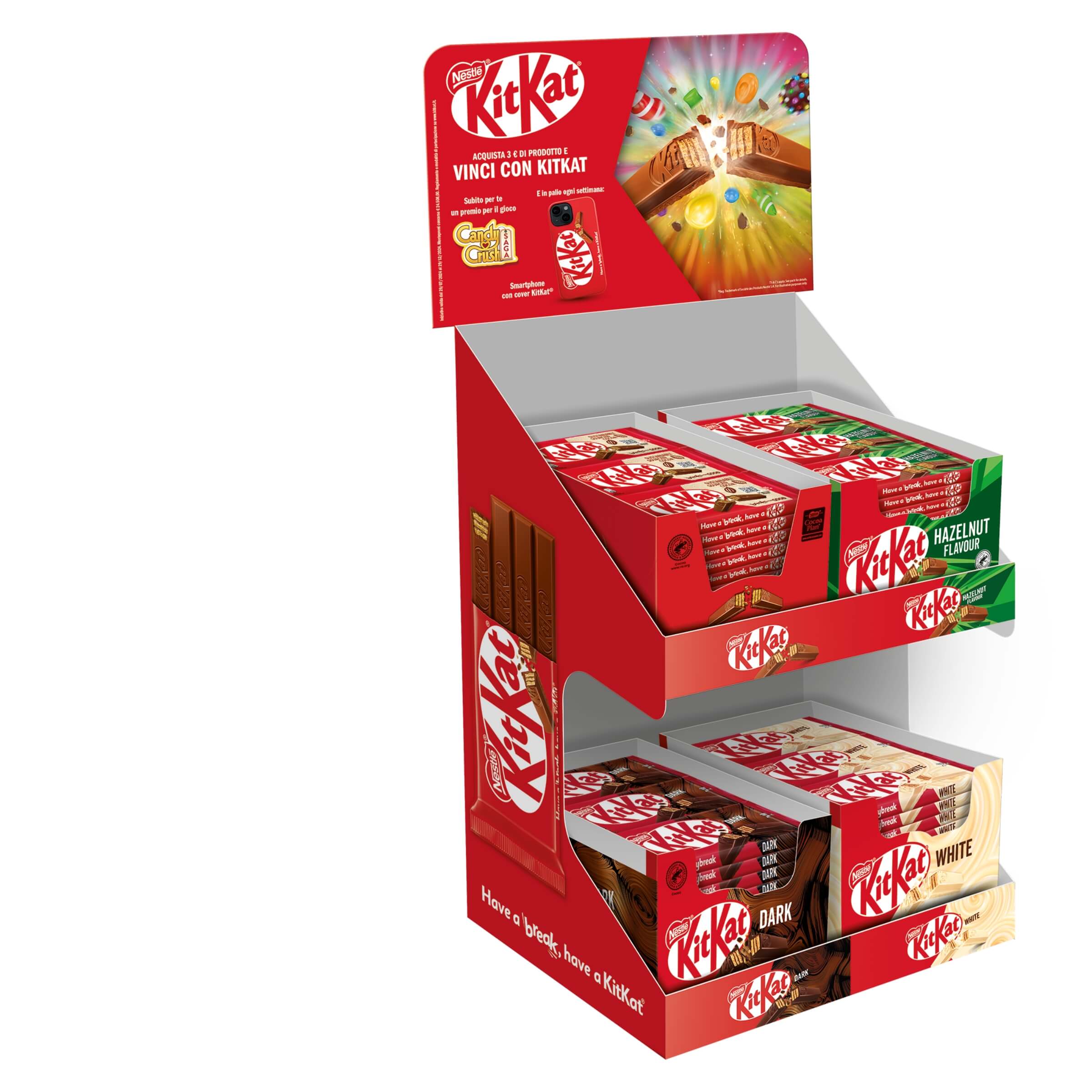 • Marchio di fiducia: Kit Kat è un’icona globale nel mondo degli snack, apprezzata per la qualità costante, il sapore riconoscibile e la comunicazione coerente, che ne rafforza l’appeal all’interno del punto vendita.