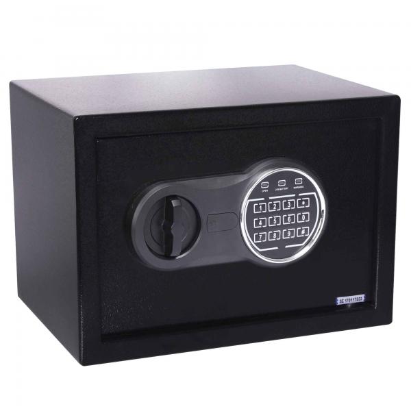 CASSEFORTI DI SICUREZZA PER LA CUSTODIA DI OGGETTI DI VALORE E CONTANTI, CON CHIUSURA ELETTRONICA + 2 CHIAVI D’EMERGENZA (OGNI CASSAFORTE HA LA PROPRIA CHIAVE). VERNICIATURA A POLVERE TERMOINDURENTE. CERNIERE INTERNE NASCOSTE PER UNA MAGGIORE SICUREZZA. TAPPETINO SUL FONDO. PUO' ESSERE FISSATA A PARETI IN MATTONE O PAVIMENTI (TASSELLI INCLUSI). CODICE DI SICUREZZA 3-8 CIFRE. COLORE NERO.