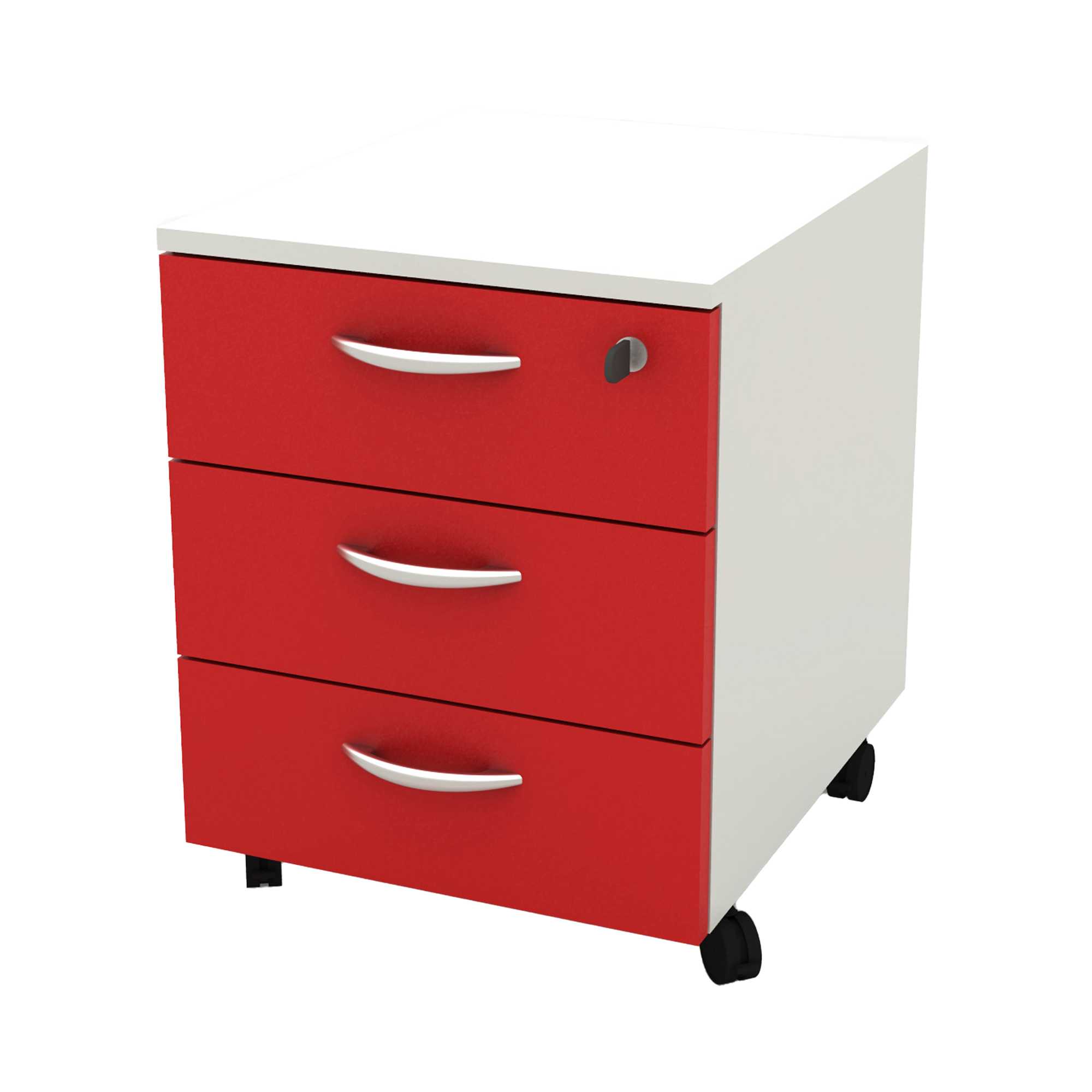 CASSETTIERA A 3 CASSETTI SU RUOTE. SERRATURA SUL PRIMO CASSETTO, GUIDE METALLICHE. DIMENSIONI UTILI DEI CASSETTI: L31,8 X P38,3 X H10,9CM. DIMENSIONE TOTALE: L41 X P50 X H52,2CM. COLORE STRUTTURA BIANCA E DEI CASSETTI ROSSO. FORNITA IN KIT DA ASSEMBLARE.