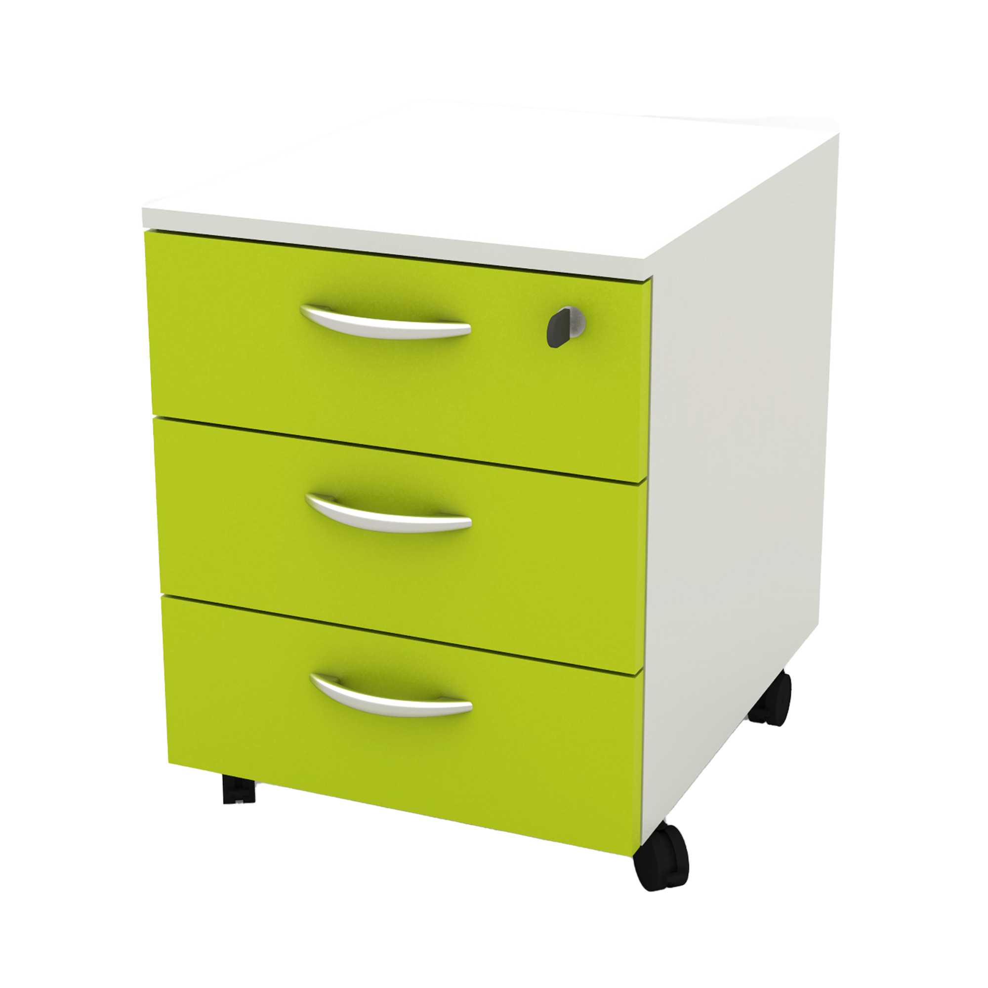 CASSETTIERA A 3 CASSETTI SU RUOTE. SERRATURA SUL PRIMO CASSETTO, GUIDE METALLICHE. DIMENSIONI UTILI DEI CASSETTI: L31,8 X P38,3 X H10,9CM. DIMENSIONE TOTALE: L41 X P50 X H52,2CM. COLORE STRUTTURA BIANCA E DEI CASSETTI VERDE. FORNITA IN KIT DA ASSEMBLARE.