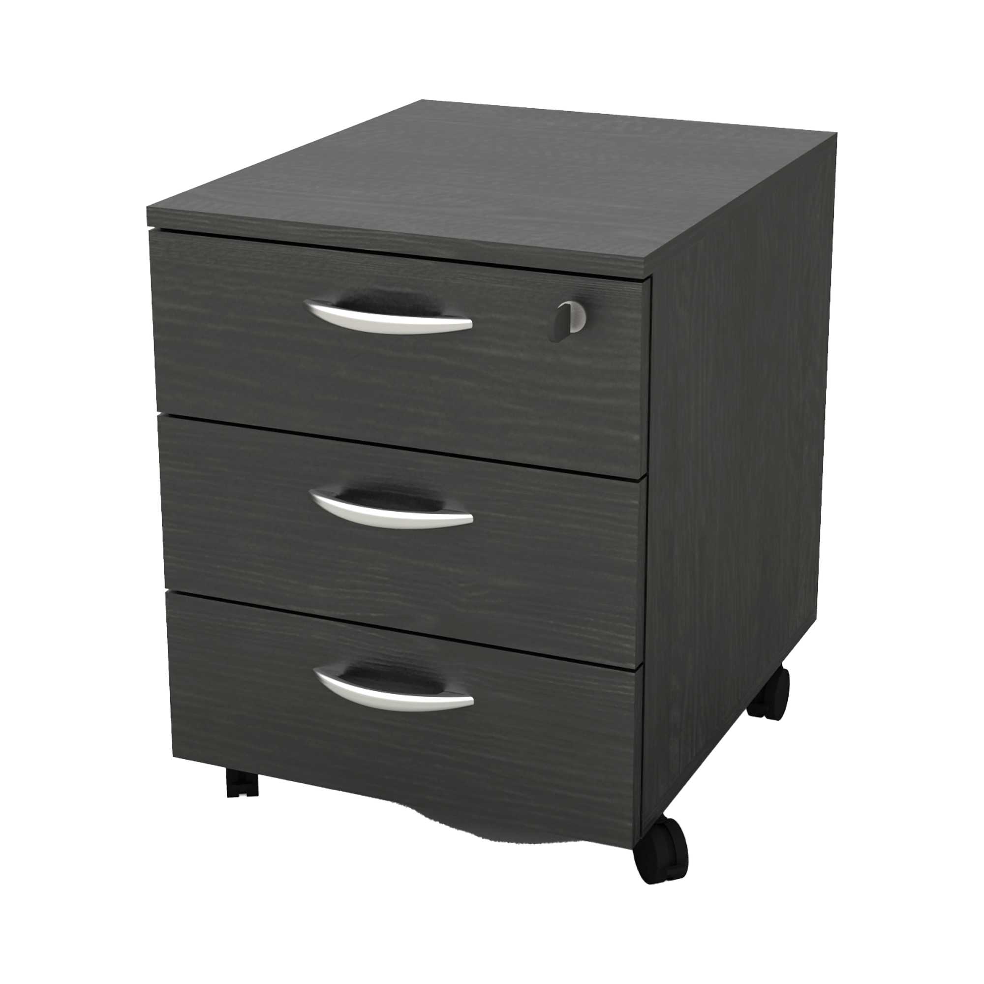CASSETTIERA A 3 CASSETTI SU RUOTE. SERRATURA SUL PRIMO CASSETTO, GUIDE METALLICHE. DIMENSIONI UTILI DEI CASSETTI: L31,8 X P38,3 X H10,9CM. DIMENSIONE TOTALE: L41 X P50 X H52,2CM. COLORE STRUTTURA E DEI CASSETTI: NERO VENATO FRASSINO. FORNITA IN KIT DA ASSEMBLARE.