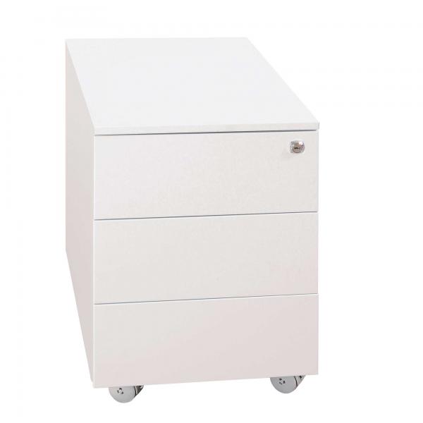 CASSETTIERA 3 CASSETTI CON CHIUSURA CENTRALIZZATA. GUIDE METALLICHE CON FERMO A FINE CORSA. FORNITA MONTATA. IL CASSETTO SUPERIORE E' DOTATO DI VASCHETTA PORTA CANCELLERIA. DIMENSIONI: L40 X P59 X H54CM COMPRESO RUOTE.