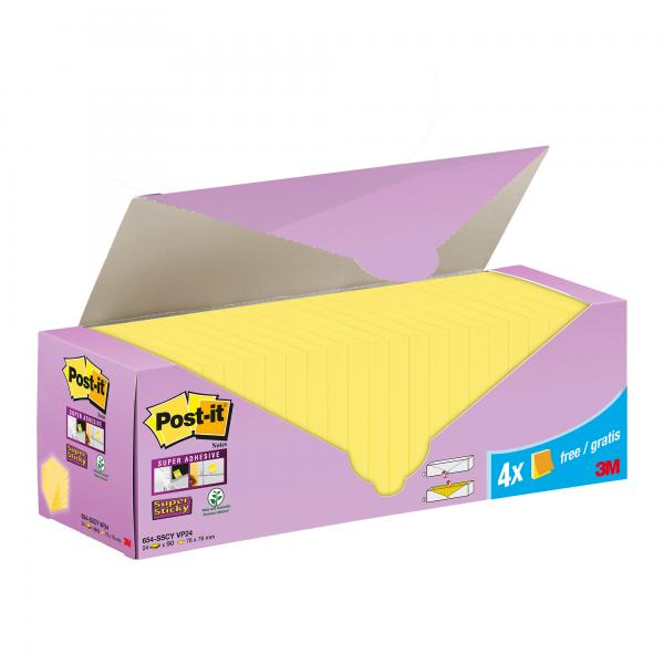 VALUEPACK 20+4 BLOCCHI FOGLIETTI POST-IT SUPER STICKY, 90FOGLI 76X76MM GIALLO CANARY.
