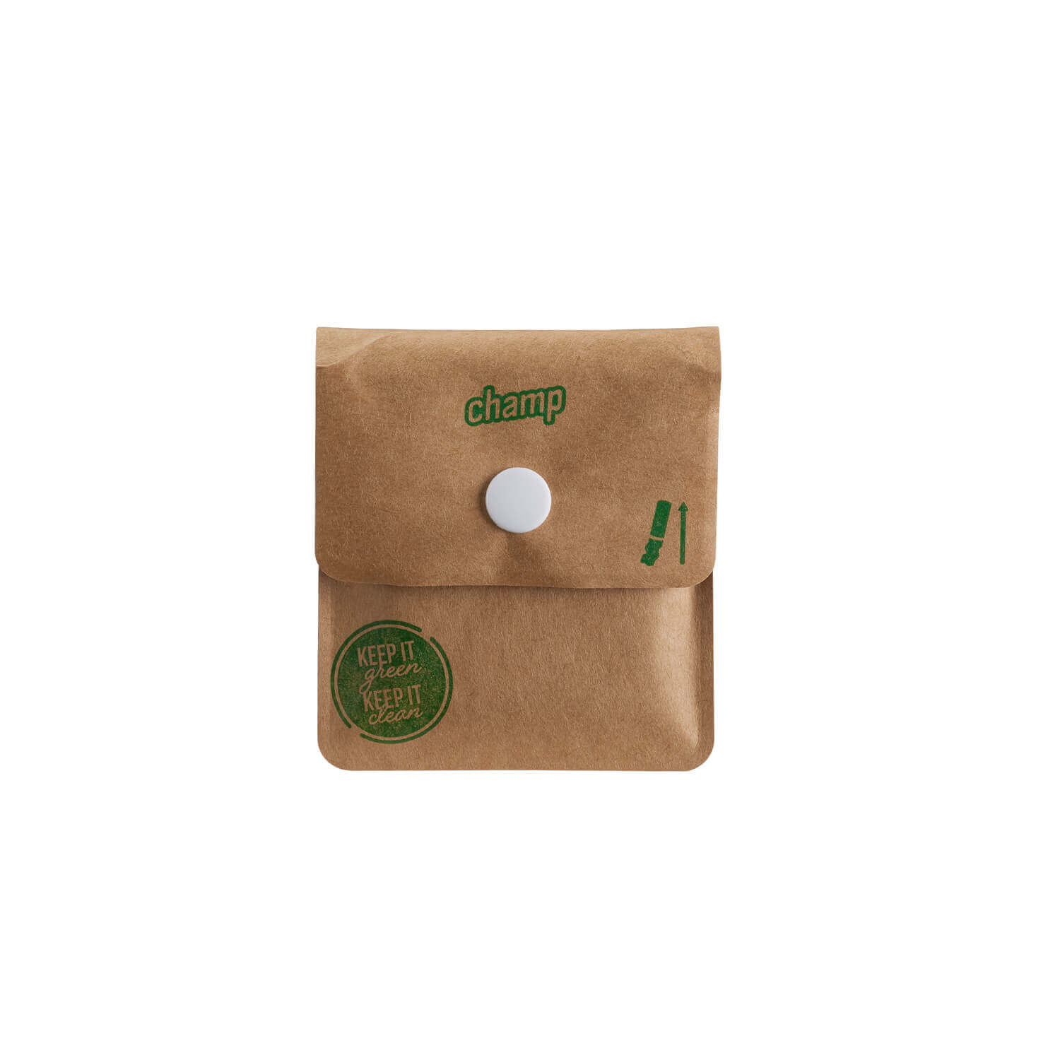 Il posacenere tascabile Champ Recycle Kraft e una soluzione pratica, ecologica e intelligente per tutti coloro che desiderano fumare senza lasciare tracce nell ambiente. Realizzato con un rivestimento esterno in carta kraft riciclabile e un interno ignifugo in materiale resistente al calore, rappresenta un accessorio innovativo che coniuga funzionalita e rispetto per la natura. Grazie alle sue dimensioni compatte, puo essere facilmente riposto in tasca, in borsa o nello zaino, diventando un compagno discreto ma indispensabile in ogni situazione quotidiana, dal lavoro al tempo libero fino ai viaggi.• Struttura eco friendly: L esterno in carta kraft riciclabile e pensato per ridurre l impatto ambientale, unendo leggerezza e resistenza in un design naturale e minimalista.• Rivestimento ignifugo: L interno e realizzato con materiale ignifugo che resiste alle alte temperature, permettendo di spegnere e conservare le sigarette in totale sicurezza.• Dimensioni compatte: Con soli 7.5 x 0.5 x 8.5 cm, il posacenere si inserisce facilmente in tasche e borse, garantendo praticita e portabilita senza ingombro.• Chiusura sicura: Dotato di bottone a pressione, impedisce la fuoriuscita di cenere e mozziconi, mantenendo il contenuto protetto e sigillato fino allo svuotamento.• Riutilizzabile e resistente: Progettato per un uso ripetuto, grazie ai materiali robusti e al rivestimento interno che non si deteriora con il contatto frequente con la cenere.• Espositore pratico: Confezionato singolarmente e disponibile in espositori multipli, risulta ideale per la vendita al dettaglio in tabaccherie, bar e negozi specializzati.• Versatilita di utilizzo: Adatto per essere utilizzato in spazi pubblici, durante eventi all aperto, in viaggio o in qualsiasi luogo dove non siano presenti posaceneri tradizionali.Questo accessorio non e solo una risposta concreta alle esigenze dei fumatori, ma rappresenta anche un gesto di attenzione verso l ambiente, favorendo comportamenti piu responsabili e contribuendo a mantenere puliti gli spazi condivisi. Il suo design semplice ma curato lo rende adatto a ogni stile di vita, dimostrando come anche un oggetto di piccole dimensioni possa avere un impatto positivo sul rispetto del territorio e sulla qualita della vita quotidiana.