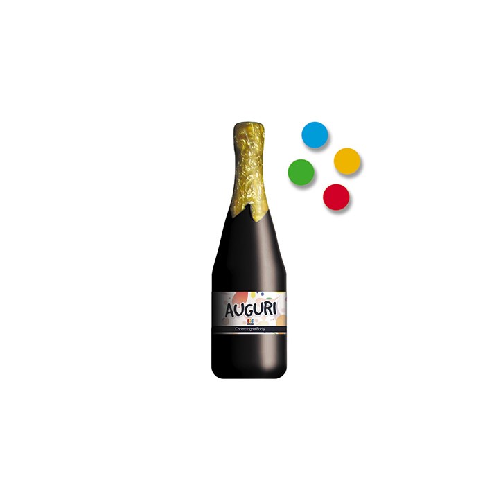 Lo Champagne Auguri Spara Coriandoli da 20 cm è l’idea perfetta per festeggiare con allegria e originalità ogni momento speciale. Realizzato con la forma di una mini bottiglia di champagne, unisce eleganza e divertimento in un accessorio scenografico che sorprende e coinvolge. Ideale per compleanni, feste di laurea, matrimoni, Capodanno o qualsiasi occasione in cui si voglia brindare in grande stile.• Design Elegante: La bottiglia riproduce fedelmente la forma dello champagne, con dettagli dorati e l’etichetta “Auguri” per un effetto realistico e raffinato.• Effetto Scenografico: All’apertura rilascia una pioggia di coriandoli colorati che riempiono l’aria di festa e allegria, creando un’atmosfera vivace e coinvolgente.• Dimensione Compatta: Con i suoi 20 cm di altezza, è pratica, leggera e facile da utilizzare in qualsiasi contesto, anche in ambienti interni.• Funzionamento Sicuro: Meccanismo ad aria compressa senza fiamma o esplosione, adatto a tutti e perfetto per l’uso in sicurezza.• Ideale per Ogni Evento: Perfetta per accompagnare il brindisi, il taglio della torta o l’ingresso dei festeggiati, regalando un tocco di magia e colore.Lo Champagne Auguri Spara Coriandoli 20 cm è il simbolo perfetto della festa: un mix tra eleganza e divertimento che trasforma ogni occasione in un momento da ricordare con il sorriso.