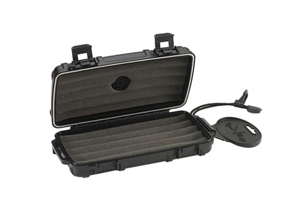 Progettato per essere a tenuta d'aria, impermeabile e indeformabile, è in plastica ABS ultra resistente, ha le cerniere in acciaio inossidabile, una chiusura a scatto ed un anello di blocco sagomato per una maggiore sicurezza. All'interno una gommapiuma di uretano ad alta densità interna protegge ulteriormente i sigari !