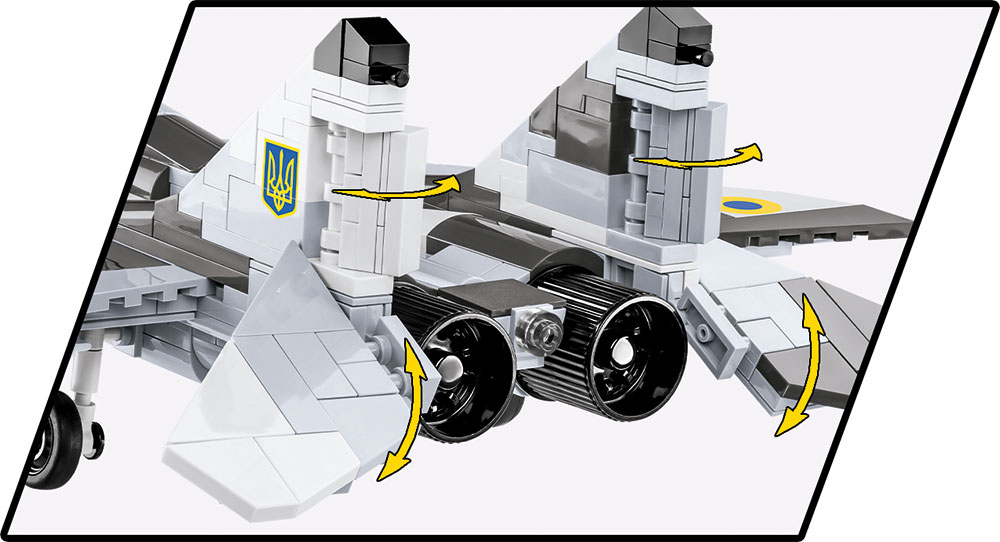 • Dettagli Autentici: Le parti mobili, tra cui alettoni e superfici di controllo, consentono di personalizzare la posizione del tuo MiG-29. I colori della bandiera ucraina conferiscono un tocco distintivo, onorando l'edizione speciale dedicata agli eventi della guerra in Ucraina del 2022.