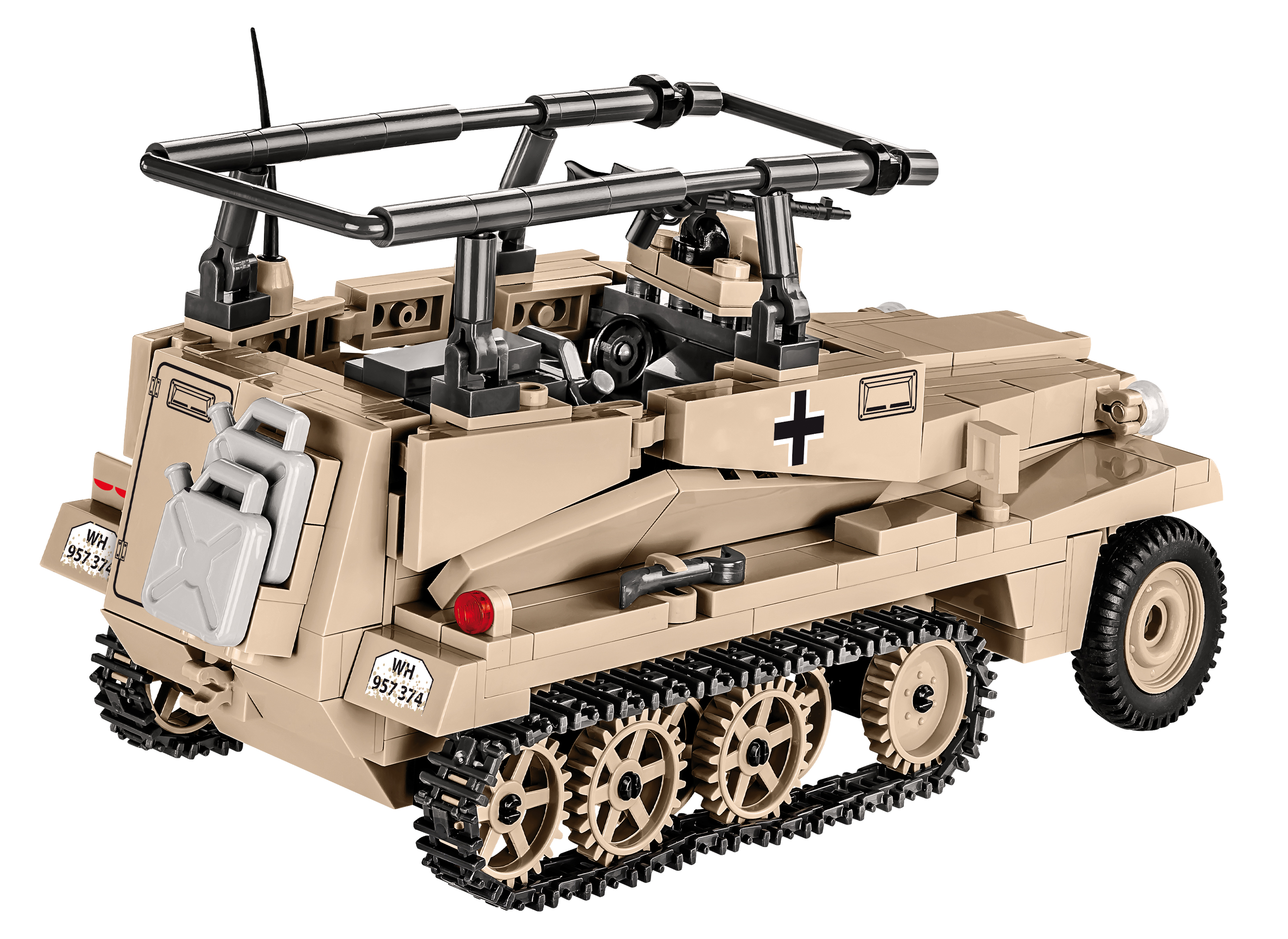 Il Sd.Kfz. 250 è stato un veicolo corazzato leggero tedesco utilizzato durante la Seconda Guerra Mondiale. Nella designazione "250/3", il numero "3" indica la versione specifica con funzioni di comunicazione.Ecco alcune caratteristiche chiave del Sd.Kfz. 250/3:Ruolo: Il Sd.Kfz. 250/3 era principalmente utilizzato come veicolo corazzato da riconoscimento e comando. La sua configurazione specifica, la "3", indicava che era attrezzato per funzioni di comunicazione e comando.Equipaggio: Era progettato per trasportare un piccolo equipaggio, spesso composto da personale di comando e comunicazioni.Design: Il veicolo aveva una configurazione a ruote motrici anteriori e una torretta corazzata. La parte posteriore del veicolo conteneva l'equipaggio e l'equipaggiamento necessario per le operazioni di comando e comunicazione.Mobilità: Il Sd.Kfz. 250/3 era noto per la sua buona mobilità, che gli permetteva di operare in vari tipi di terreno. La sua struttura leggera lo rendeva adatto per esplorare e comunicare in ambienti più difficili.Partecipazione alla Guerra: Questo veicolo corazzato è stato utilizzato attivamente dalla Germania nazista durante la Seconda Guerra Mondiale, partecipando a varie campagne militari.Varianti: La famiglia Sd.Kfz. 250 includono diverse varianti, ognuna progettata per scopi specifici. La versione "3" si distingue per la sua funzione di comando e comunicazione.Il Sd.Kfz. 250/3 rappresenta uno dei numerosi veicoli corazzati utilizzati dalla Germania durante la Seconda Guerra Mondiale e riflette la diversificazione delle forze corazzate tedesche per soddisfare esigenze specifiche sul campo di battaglia.Caratteristiche Principali:• 426 pezzi: con un totale di 426 pezzi, questo kit di costruzione offre una sfida coinvolgente, ideale per gli appassionati di storia e costruzione.• Dimensioni realistiche: con una lunghezza di 18 cm, larghezza di 8 cm e un'altezza di 10 cm, la replica Sd.Kfz. 250/3 è un capolavoro compatto che cattura la natura agile di questo veicolo corazzato.• Dettagli Fedeli: Ogni pezzo del kit è progettato con precisione per catturare gli intricati dettagli del Sd.Kfz. 250/3, dal suo design a ruote motrici alla caratteristica torretta corazzata.• Esperienza di Costruzione Immersiva: Le parti mobili consentono di personalizzare la posizione del veicolo, offrendo un'esperienza di costruzione interattiva e coinvolgente.• Compatibile con Altre Costruzioni: Totalmente compatibile con altre marche di costruzioni, questo kit si integra facilmente nella tua collezione esistente.• Dimensioni Accessibili: Con le sue dimensioni accessibili, il Sd.Kfz. 250/3 è perfetto per l'esposizione su scrivanie, mensole o come pezzo centrale nella tua collezione di veicoli storici.