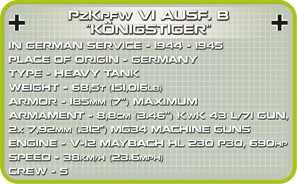 COBI WORLD WAR II - #2540 - 1000PZ - PZKPFW VI AUSF.B "KONIGSTIGER"