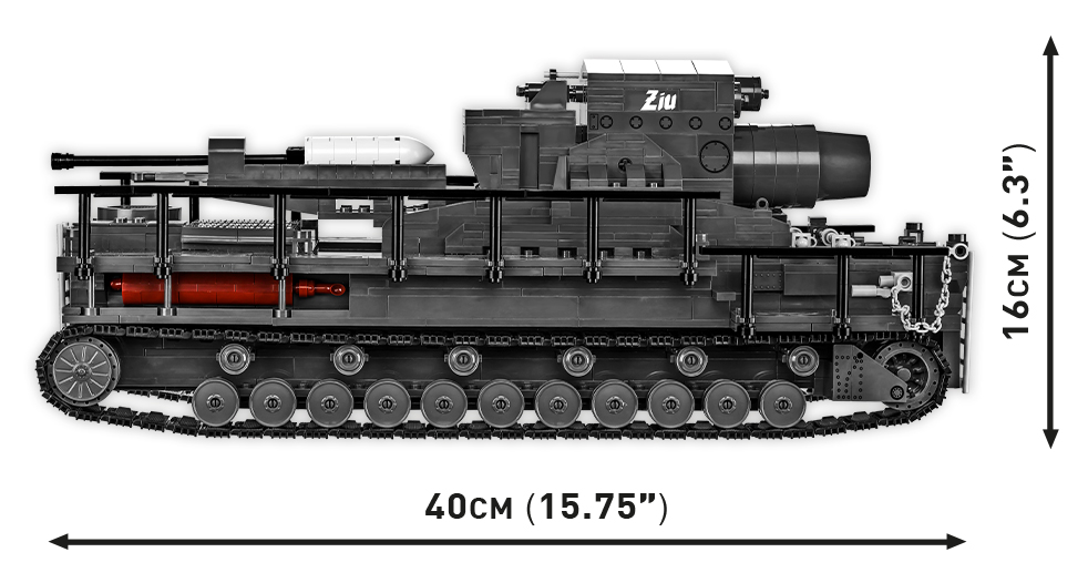 Il modello realizzato con i blocchi di costruzione COBI è dotato di molti elementi mobili, come le ruote rotanti e i binari di lavoro, la canna del fucile mobile e il sistema di caricamento. La nuova versione è stata migliorata e presenta ancora più dettagli. Il set comprende quattro figure e un cane. Si tratta di un ufficiale, un soldato di servizio, un meccanico e un gendarme. Le figure hanno ricevuto un set di gambe completamente nuove con stivali da ufficiale. Il gendarme è dotato di un nuovo accessorio che raffigura l'equipaggiamento di un soldato tedesco. L'intero set è completato da un mattone con il nome del mortaio "ZIU" stampato su di esso, che viene installato sul modello. Il set comprende anche una targa con il nome del set.