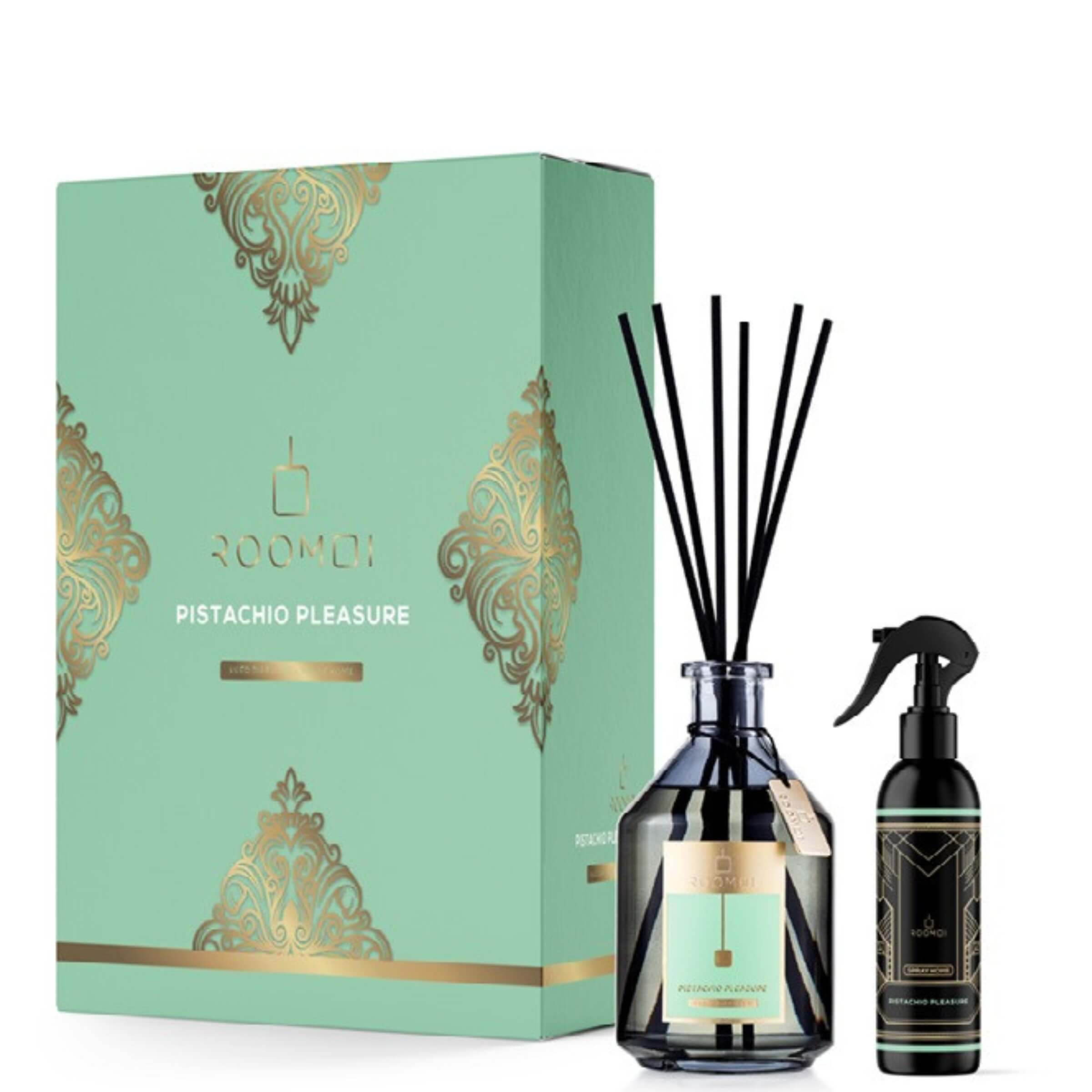 Il cofanetto Roomoi Pistachio Pleasure trasforma ogni stanza in un luogo accogliente e ricco di personalità. Le sue note olfattive evocano il piacere di un dolce appena preparato, unendo la cremosità del pistacchio a un bouquet floreale e a un fondo caldo e vellutato. Questo profumatore diventa così il compagno ideale per momenti di relax e convivialità, capace di imprimere ricordi e sensazioni nella memoria olfattiva, regalando ogni volta un tocco di magia.