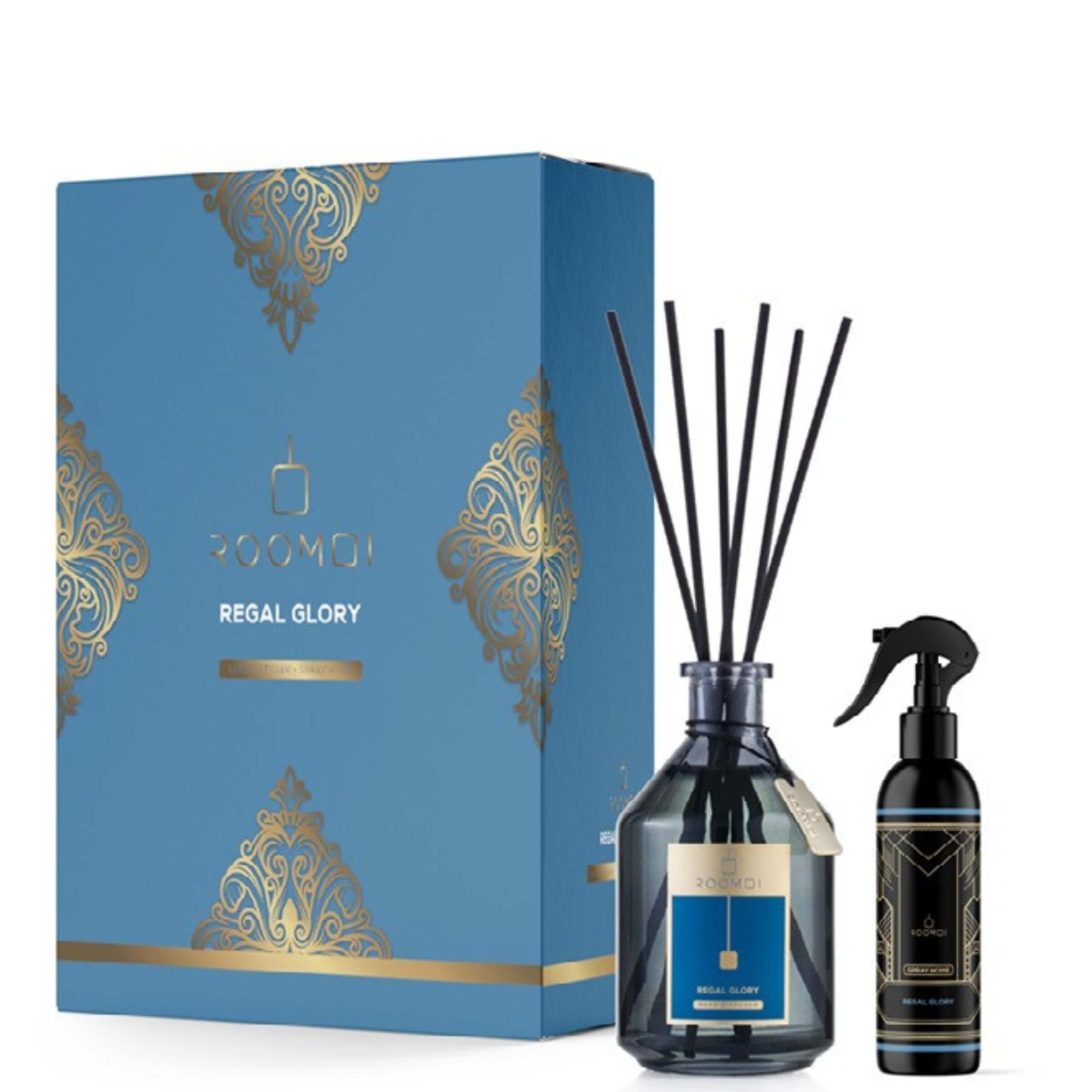Questo cofanetto Roomoi interpreta il profumare la casa come un gesto di cura e stile quotidiano. Regal Glory, con il diffusore da 500 ml e lo spray da 200 ml, diventa un segno distintivo capace di donare personalità agli spazi, trasmettendo energia, calore e raffinatezza. Una fragranza che lascia il segno e che accompagna ogni momento con la forza vibrante della natura.