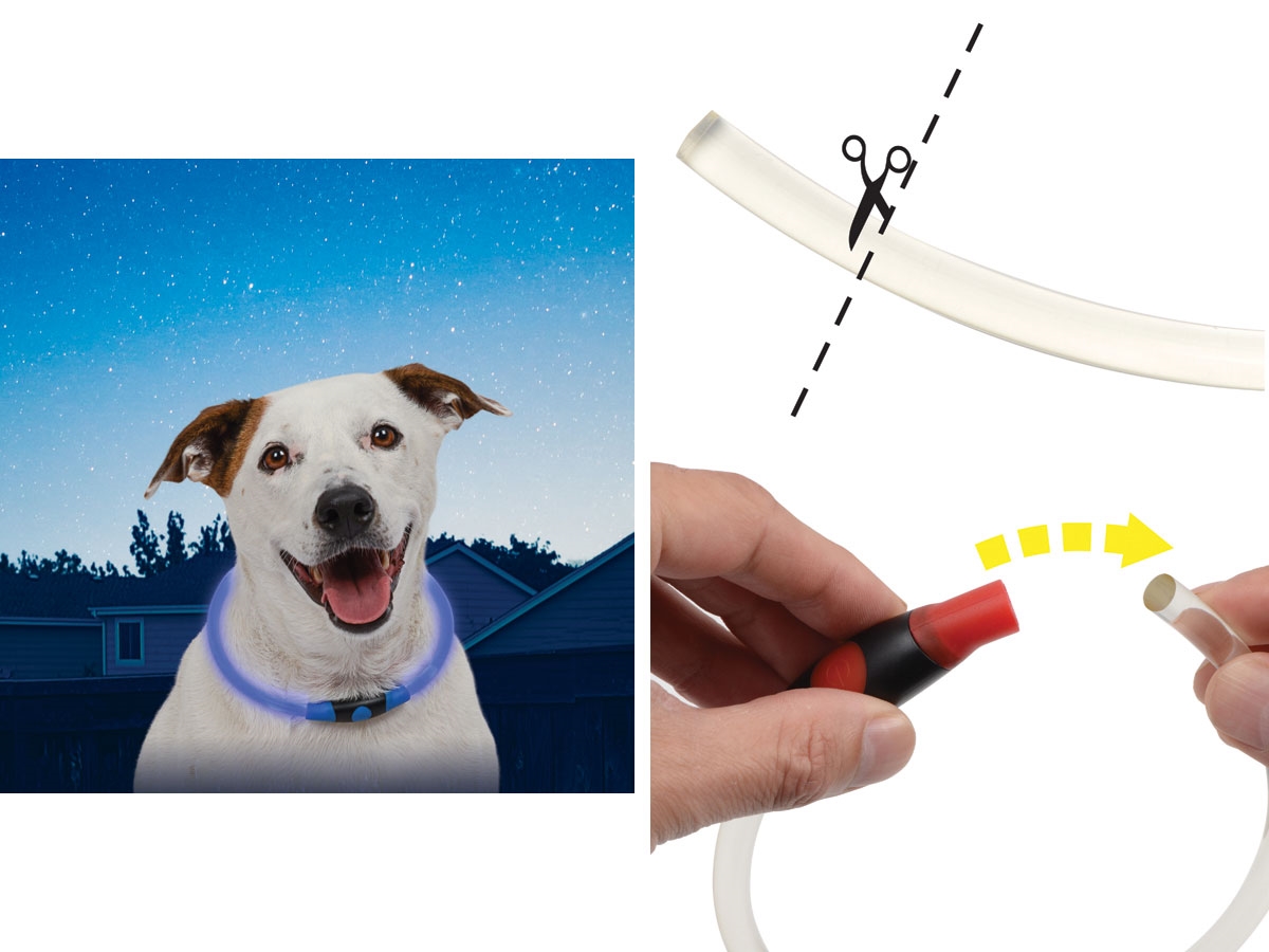 Disponibile in una varietà di colori LED luminosi, il NiteHowl Led Safety Necklace è una collana di sicurezza per cani che fornisce un anello completo di illuminazione intorno al collo del cane. Può essere impostata in modalità bagliore o flash e può essere facilmente tagliata per adattarla e renderla perfetta sia per cani grandi che piccoli. E' realizzata con polimero flessibile illuminato da due LED (rosso, verde, arancione, rosa o blu) e basta premere rapidamente il pulsante per illuminarsi a 360 gradi, rendendo il cane chiaramente visibile da tutte le angolazioni.