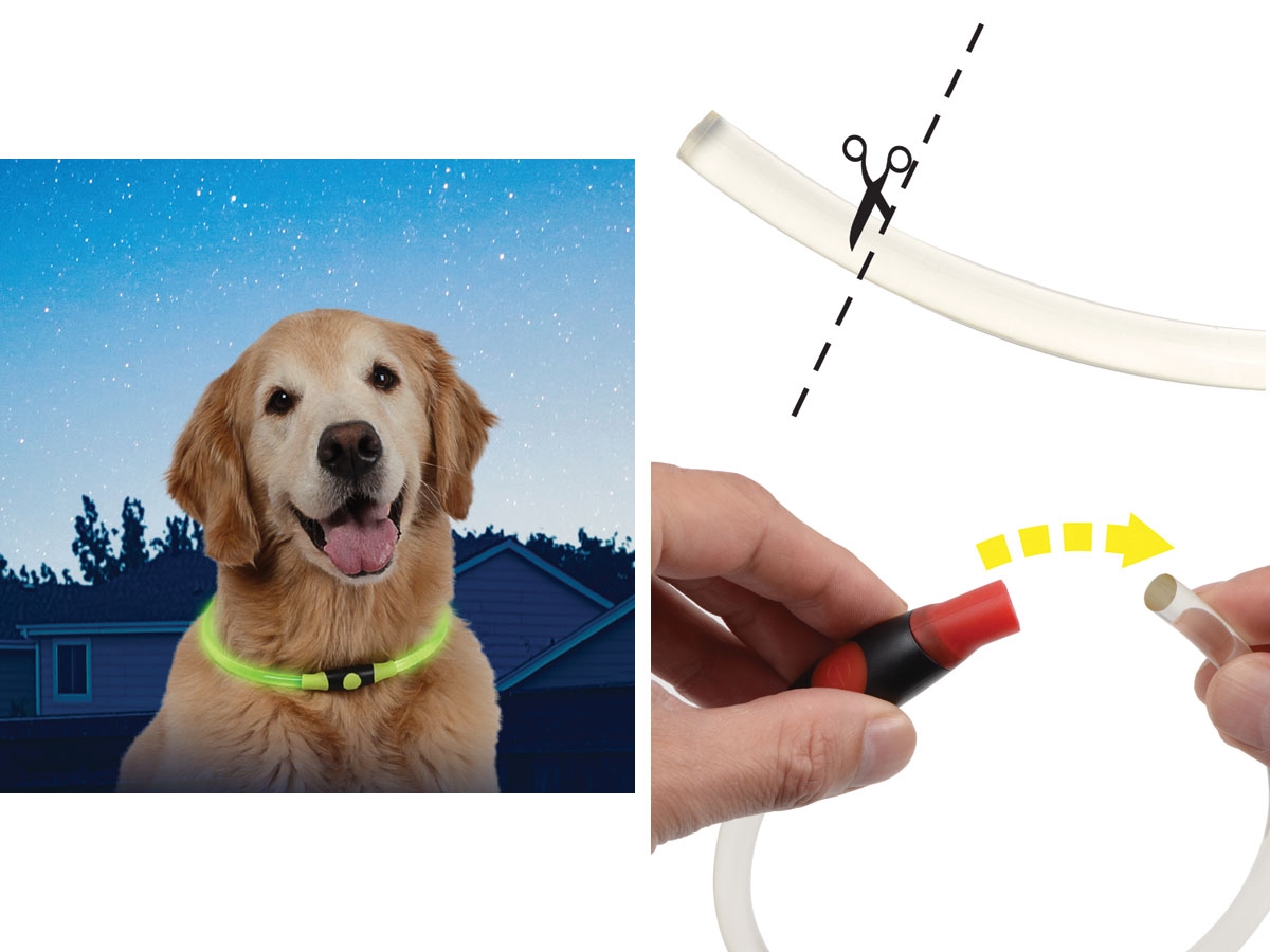 Disponibile in una varietà di colori LED luminosi, il NiteHowl Led Safety Necklace è una collana di sicurezza per cani che fornisce un anello completo di illuminazione intorno al collo del cane. Può essere impostata in modalità bagliore o flash e può essere facilmente tagliata per adattarla e renderla perfetta sia per cani grandi che piccoli. E' realizzata con polimero flessibile illuminato da due LED (rosso, verde, arancione, rosa o blu) e basta premere rapidamente il pulsante per illuminarsi a 360 gradi, rendendo il cane chiaramente visibile da tutte le angolazioni.