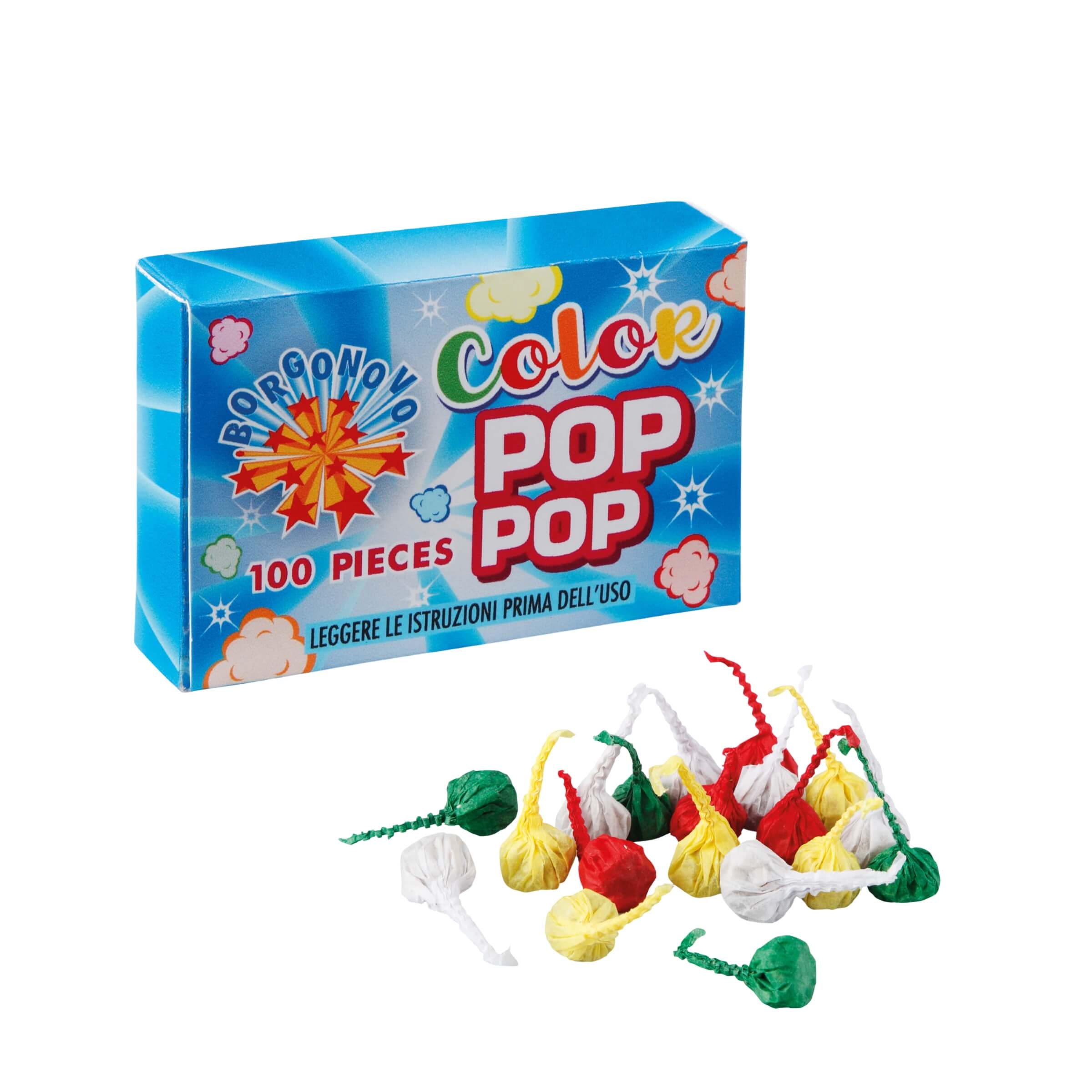 Scopri il divertimento dei Color Pop Pop Borgonovo, piccoli dispositivi pirotecnici che garantiscono un effetto sorprendente al contatto con il suolo. Ogni pezzo è confezionato in modo sicuro e pronto per l'uso, creando un simpatico colpo sonoro che affascina grandi e piccoli.