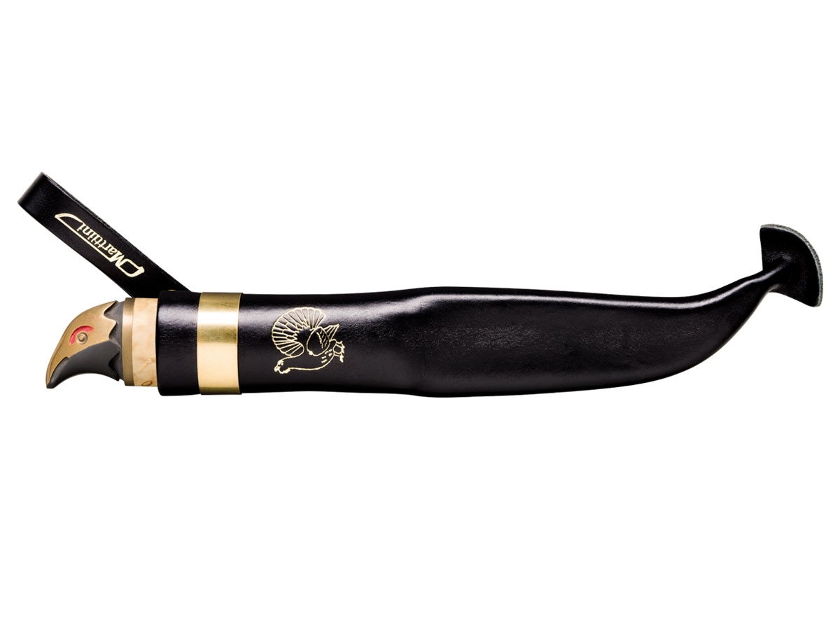 La caratteristica distintiva del gallo cedrone, una delle creature più apprezzate della fauna finlandese, ovvero il vistoso sopracciglio rosso, gioca un ruolo importante in questo splendido coltello. Le ghiere in bronzo fuso e la splendida impugnatura in betulla riccia rendono questo coltello un regalo unico per tutti coloro che apprezzano i grandi coltelli e la purezza della natura finlandese.