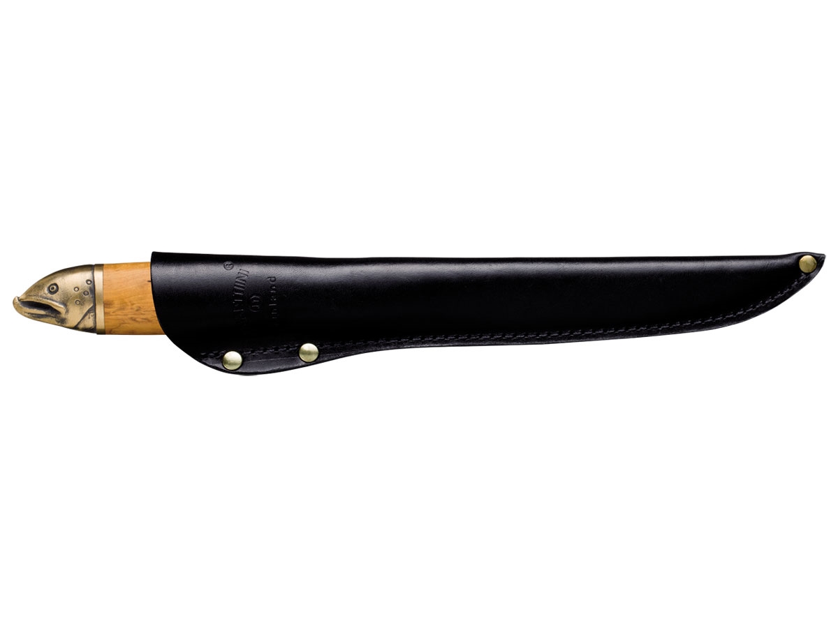 Il salmone, il re dei pesci finlandesi, merita il suo titolo non solo per la sua forza, ma anche per la sua bellezza. Il Kojamo, il grande e maestoso re dei salmoni dei fiumi settentrionali, ha governato il regno dei fiumi e dei torrenti profondi per secoli ed è un tema eccellente per il più bello dei coltelli da sfilettatura Marttiini. La lama flessibile e affilata garantisce filetti puliti. Il coltello per sfilettare il salmone è un regalo perfetto per un pescatore.