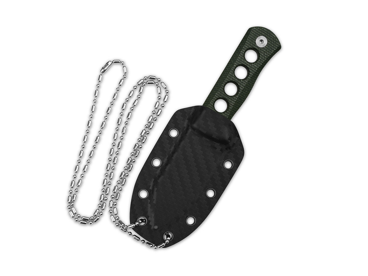 Il Canary è un coltello da collo con una lama drop point in acciaio inossidabile ed un manico in Micarta. Viene fornito con un fodero in Kydex con catena. E' disponibile in varie colorazioni del manico e rifiniture della lama.