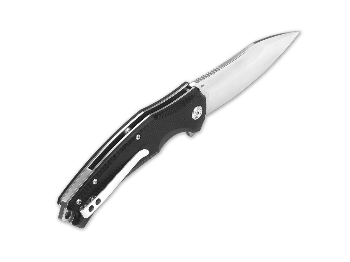 Lo Snipe è un tascabile EDC dal prezzo conveniente che presenta una lama clip point modificata da 3,575 pollici in acciaio per utensili D2 con un flipper per l'apertura ad una mano sola. L'impugnatura in G10 presenta una testurizzazione che permette una presa sicura. La clip da tasca è in acciaio inossidabile ed è reversibile.