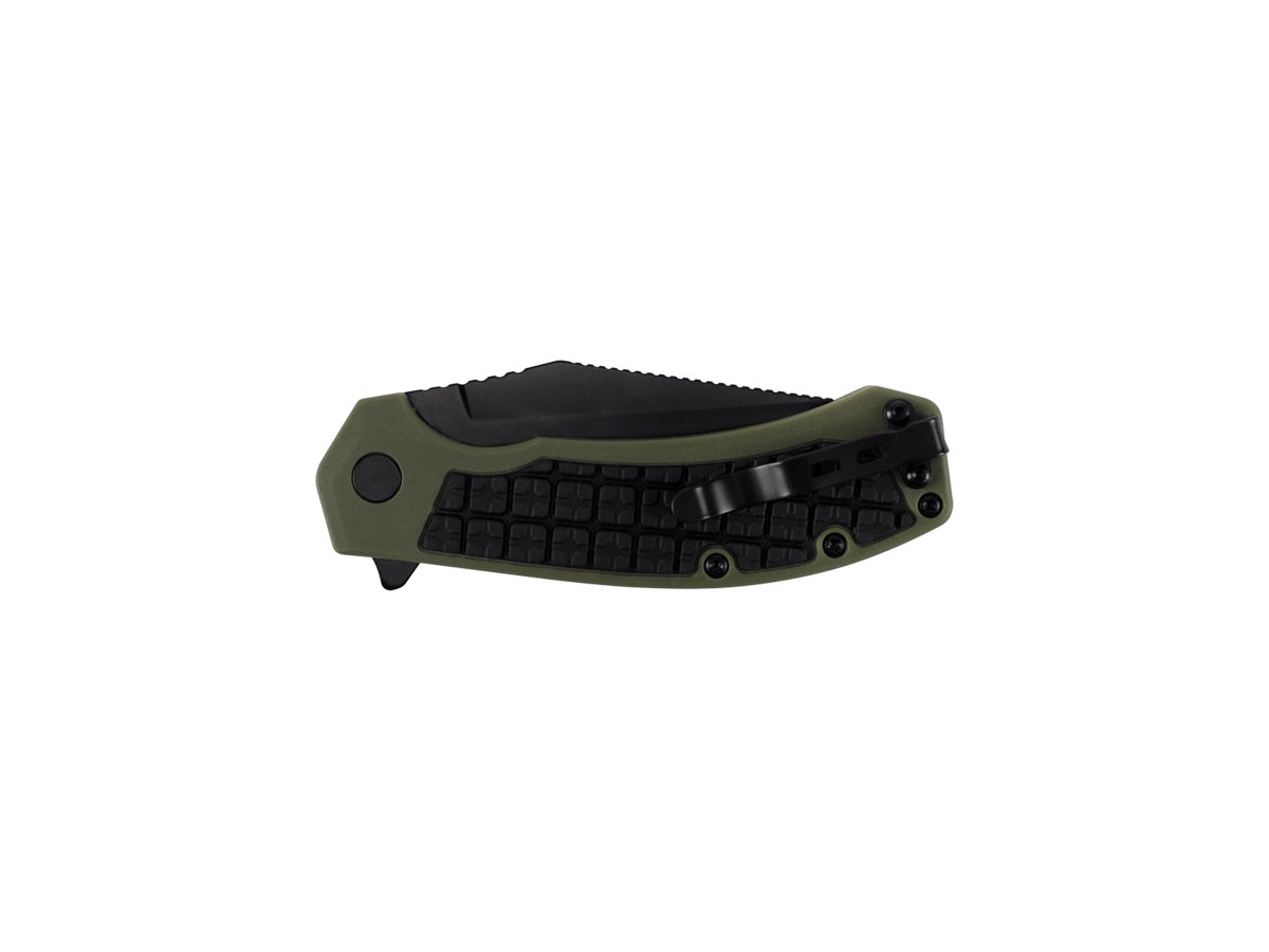 Questo coltello è quello che si dice "pratico, affidabile e robusto." Nonostante le dimensioni siano contenute, offre una lama più grande di quanto si possa immaginare. Realizzata in acciaio inossidabile di qualità 8Cr13MoV, la lama è rivestita di ossido nero per conferirgli un aspetto tattico e aggiungere un ulteriore strato di protezione dalla corrosione. Il manico è in nylon glass-filled olivastro con un inserto gommato, che garantisce un'ottima presa. Il coltello si apre con un flipper e con il sistema di apertura con cuscinetti a sfera KVT. Non c'è bisogno di un assistente meccanico KVT lo rende liscio e facile da aprire con una sola mano.