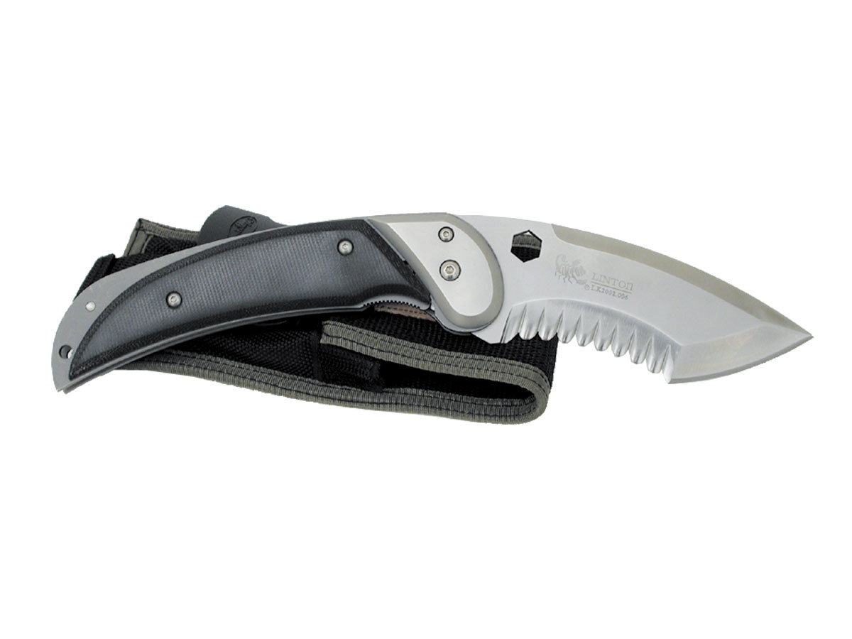 Linton TIGER SHARK ITiger Shark I Lama: 440-A - Manico: Micarta - L.tot.: cm.27,1 - Fodero: Nylon