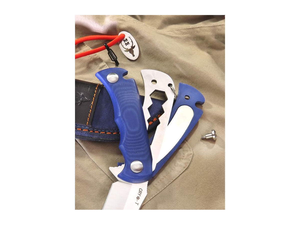 La lama è realizzata in acciaio inossidabile MOVA (1.4116) con uno speciale trattamento criogenico CRIO-T   per migliorarne le proprietà . Il manico è in Micarta arancione con cordino paracord dello stesso colore.. Il coltello viene fornito con una custodia in nylon.