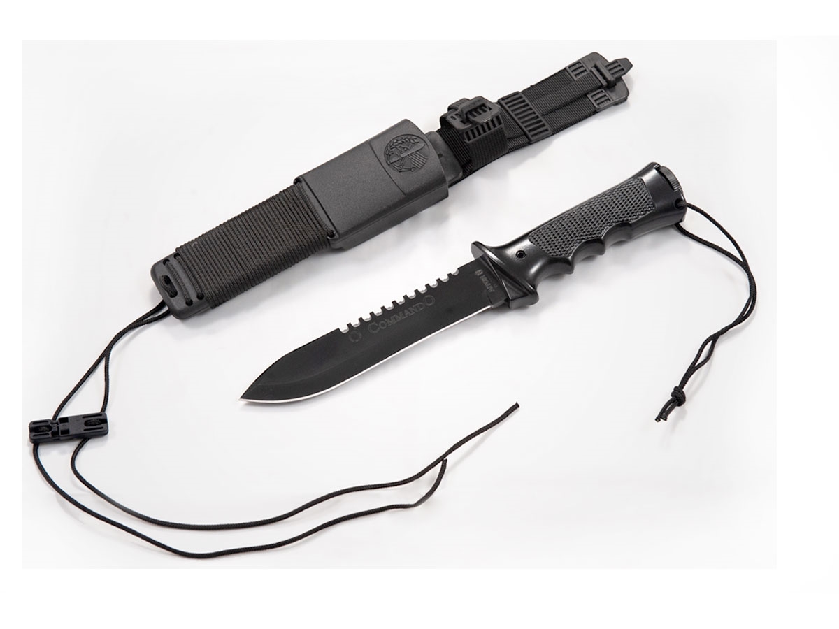 Il leggendario coltello da sopravvivenza Commando fu originariamente progettato insieme al produttore tedesco Mauser per l'esercito tedesco. Potente coltello ultra resistente si adatta a molteplici situazioni di sopravvivenza estreme. Nella cavità del manico e nel fodero sono inclusi vari accessori.