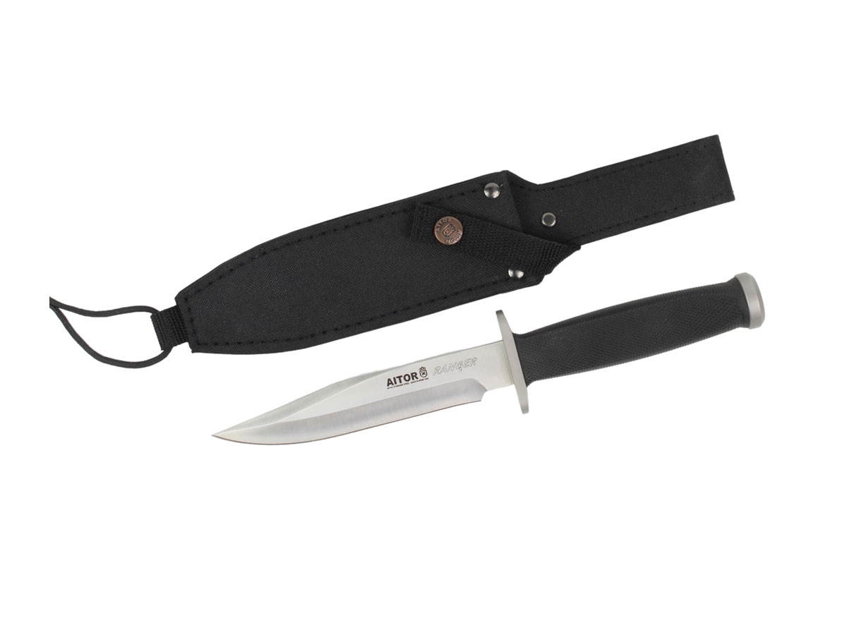 Il coltello Ranger è un coltello tattico con lama clip point e manico in gomma con guardia e pomello in acciaio.