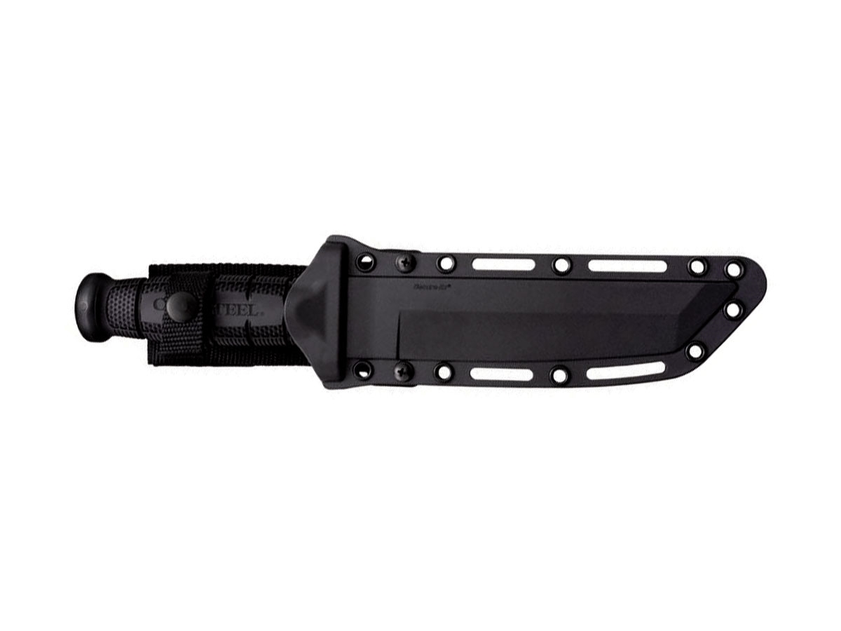 La serie Cold Steel Leatherneck è composta da due stili di lame distinti e iconici, che hanno entrambi dimostrato di essere eccezionalmente apprezzati dai nostri fratelli e sorelle nelle forze armate: Il Leatherneck-SF (per Semper-Fi) ha una bellissima sciabola levigata a mano lama con punta a clip rettificata e Leatherneck Tanto presenta la nostra caratteristica lama "American Tanto" Cold Steel con una punta rinforzata robusta per una maggiore resistenza. Entrambi sono realizzati in resistente acciaio per utensili D2 con finitura verniciata a polvere nera antiriflesso. Per evitare che le dita dell'utente scivolino in avanti sul bordo affilato, i Leatherneck sono dotati di una doppia protezione in acciaio solido. I manici sono realizzati in Kray-Ex™ profondamente a scacchi che abbraccia totalmente i Leathernecks extra larghi, full tang. Il manico del Leatherneck è ricoperto da uno spesso, calciolo in acciaio lavorato (non fusione o plastica a buon mercato come alcuni altri sul mercato) in modo che possano anche fungere da martello in caso di emergenza! Per trasportare i coltelli Leatherneck in modo sicuro e conveniente, ogni lama è dotata di un fodero Secure-Ex in stile militare robusto e versatile con passante per cintura completamente staccabile e ambidestro.