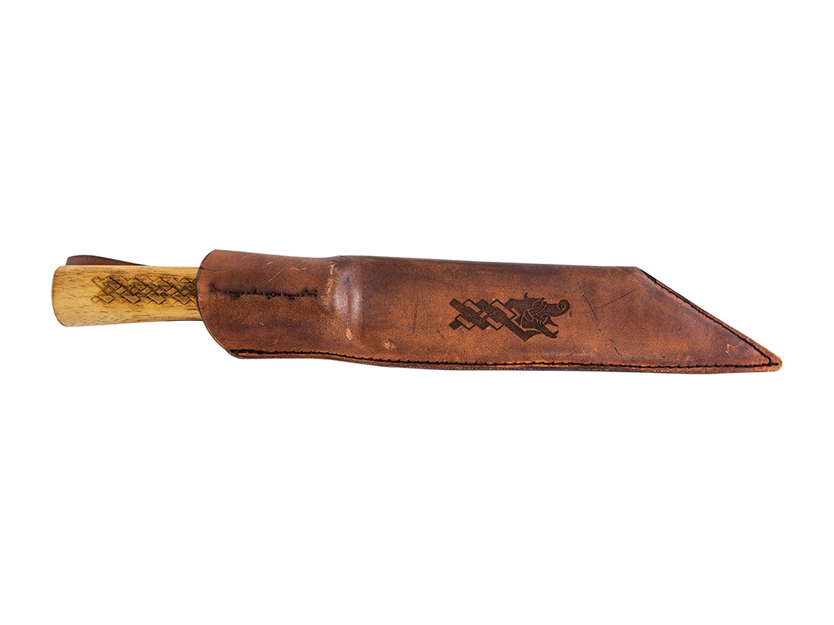Il Norse Dragon Seax Knife è un coltello outdoor norvegese che risale alle tribù germaniche nel periodo di migrazione, creando un collegamento diretto tra i Vichinghi in Inghilterra e Irlanda. Ha una lama realizzata in acciaio al carbonio 1095 con un bordo convesso scandi-edge facile da affilare anche quando si hanno mezzi limitati. Il coltello è adatto per compiti leggeri di bushcraft e lavori in legno. E' incluso un fodero in cuoio.