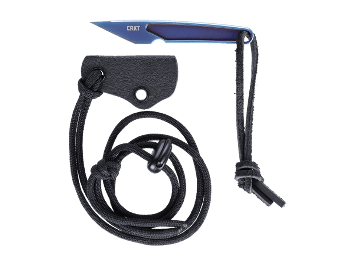 Realizzata in un unico pezzo di titanio anodizzato, la lama fissa ultra-compatta HangTi è il compagno perfetto per i lavori di taglio leggeri. Tradizionalmente utilizzata in Giappone per tagli precisi nella lavorazione del legno e dei tessuti, la forma della lama Kiridashi sull'HangTi rende questo coltello leggero ideale per lavori di incisione e di punta fine, mentre la punta ad ago è ottima per tagliare i blister di trappole e semplificare il lavoro di spedizione delle scatole. L'HangTi è dotato di una guaina Kydex resistente con un cordino e può essere indossata attorno al collo, infilata in una tasca o facilmente attaccata a uno zaino. Il portachiavi in pelle incluso fornisce un po' più di presa quando si impugna il coltello.