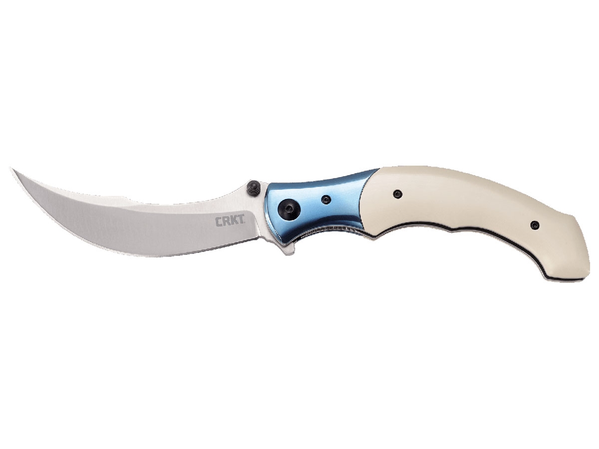Alan Folts è conosciuto nel mondo dei coltelli per i suoi design di piccoli coltelli, ma fa un passo in avanti nel mondo dei grandi coltelli con il RITUAL. Come una lama fissa dell'antica Persia, questo pieghevole ha una lama lunga e curva ed un manico consistente. La lama da 4" si apre in modo fluido e veloce grazie alla combinazione del perno con cuscinetto a sfere IKBS, del meccanismo a molla e del flipper. Il manico è realizzato in Micarta color avorio con delle attraenti testine blu in acciaio inox.