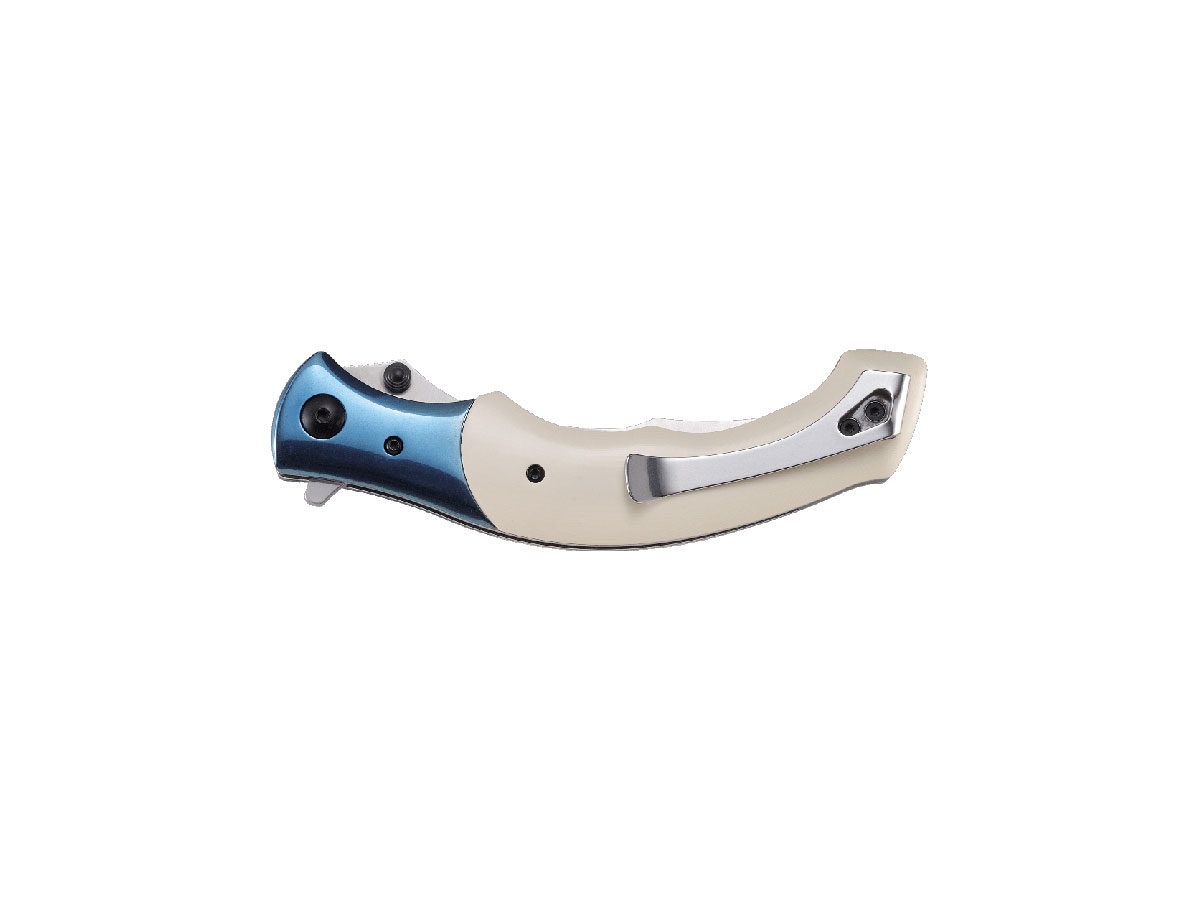 Alan Folts è conosciuto nel mondo dei coltelli per i suoi design di piccoli coltelli, ma fa un passo in avanti nel mondo dei grandi coltelli con il RITUAL. Come una lama fissa dell'antica Persia, questo pieghevole ha una lama lunga e curva ed un manico consistente. La lama da 4" si apre in modo fluido e veloce grazie alla combinazione del perno con cuscinetto a sfere IKBS, del meccanismo a molla e del flipper. Il manico è realizzato in Micarta color avorio con delle attraenti testine blu in acciaio inox.